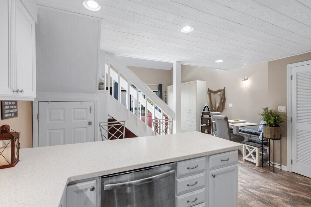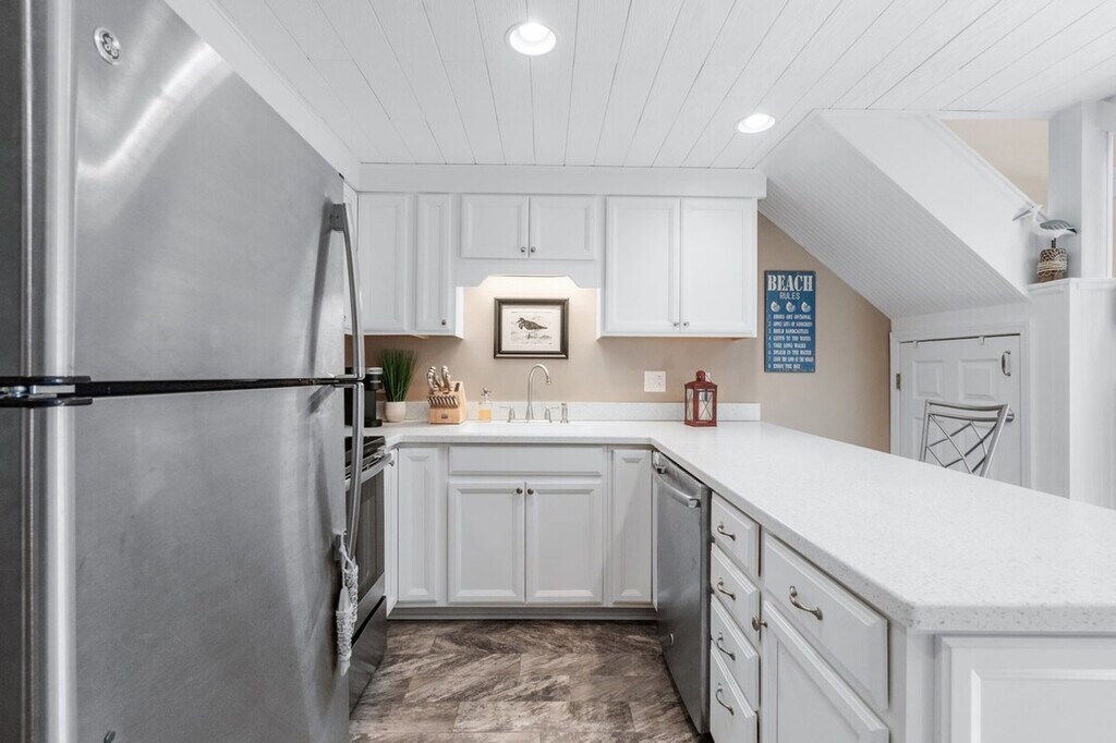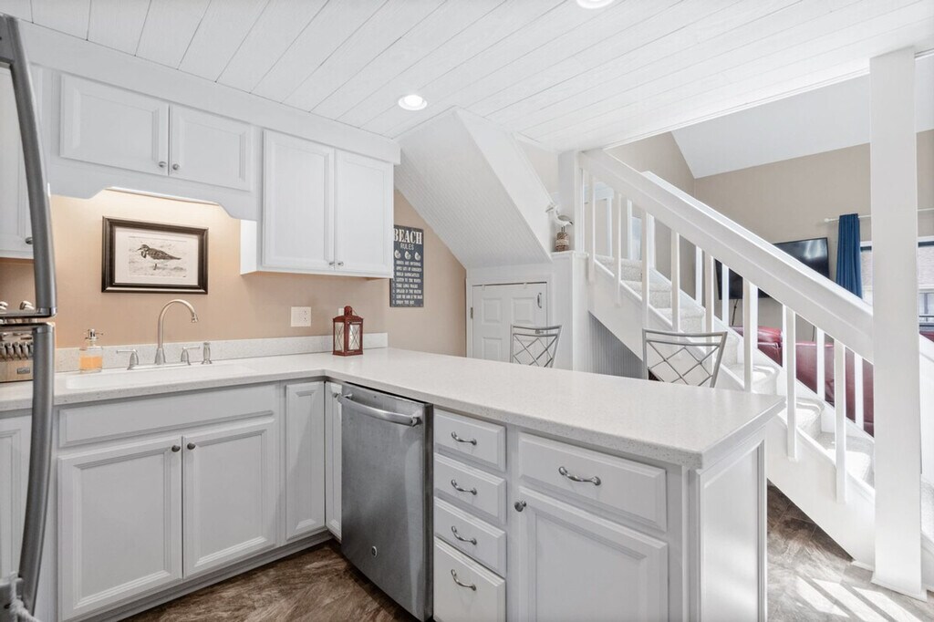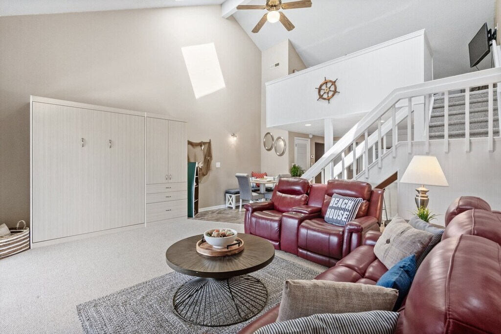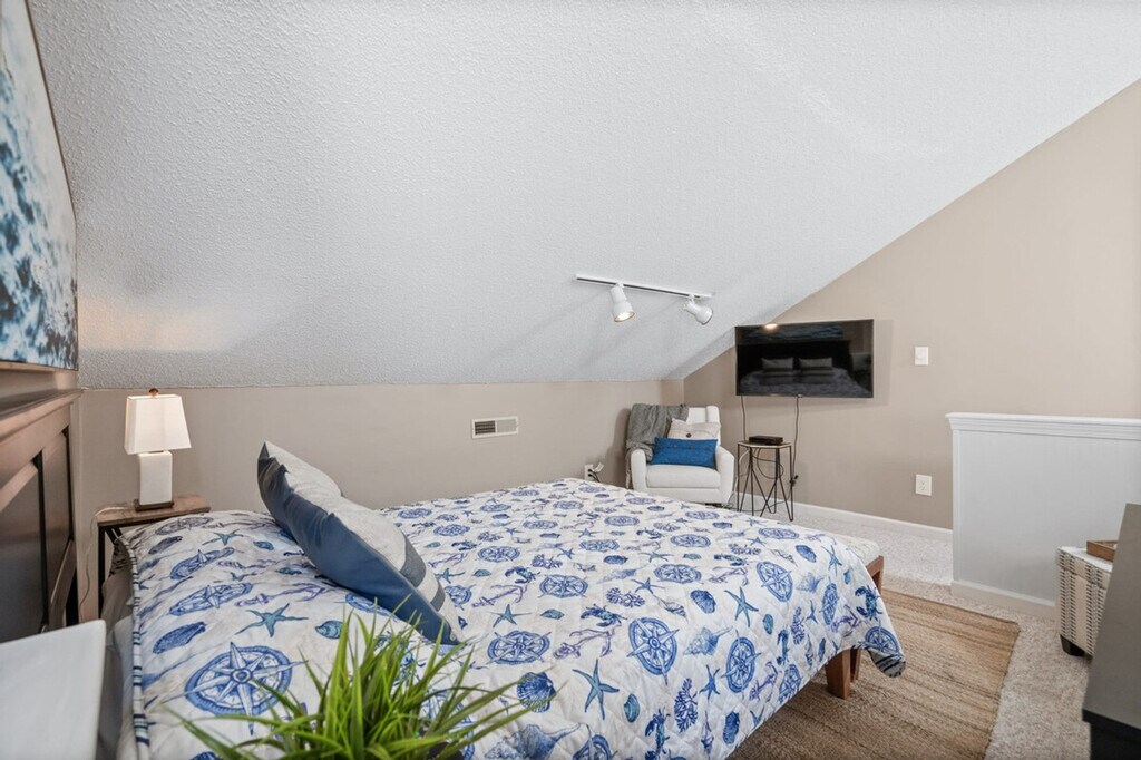 Feel at home in this loft-style condo located in Golf Colony of Deerfield, arguably the nicest and most luxurious property in Golf Colony and possibly all of Surfside Beach. Entering the main condo door on the second floor, you will have a short flight up to the main living level. No expense has been spared in this unforgettable property. As soon as you ascend, you will find a beautifully remodeled kitchen with all brand new stainless appliances, granite countertops, bar stool seating for two, and an additional dining table for four just adjacent. There is a fully remodeled bath with a large stand-up shower just off the kitchen and a large closet for clothing storage. You will love the vaulted ceilings with tons of natural light flooding in. The living room contains additional clothing storage as well as a comfortable queen murphy bed that conveniently folds away to provide more space when not in use. There is also a fully covered porch with a small dining table and seating with a bird's eye view of the pool, grilling deck, and garden courtyard just below. Heading up to the loft, you will find another comfortable queen bed with a 40+" Roku TV, and all TVs have premium cable in addition to streaming options in case you want to watch local channels. The pool deck below has plenty of lounge chairs plus dining tables with umbrellas, and the grilling deck with charcoal grills and smokers can't be beat! Linen service for all beds in the home, as well as bath towels, hand towels, and washcloths, is available for an additional fee of $50 for your stay. Located in the heart of Surfside Beach and just 1.5 miles from the beach, you will have full access to the condo with no shared spaces other than the pool deck and grilling areas that are shared with a small amount of condos in the community, meaning they are rarely ever full, even during peak summer months. The pool is also open year-round! No pets or smoking are allowed inside the condo. Routine pest control treatment may be scheduled during your stay, typically occurring on the second Monday of odd months. The pest control technician, who is fully licensed and insured, will need access to your unit to perform the service and will knock before entering. A fine may be applied if entry is refused. [SI]