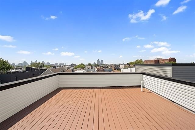 NEVER BEEN LIVED IN - TOP FLOOR new construction, 3-bedroom, 2-bathroom home with roof deck and garage parking in Jersey City Heights. The open-concept main floor features soaring 12-foot ceilings, a gorgeous top-of-the-line kitchen with stainless steel appliances, quartz countertops, custom lighting, and ample cabinet storage. The living room features oversized windows that fill the space with an abundance of natural light. The primary bedroom offers a custom floor-to-ceiling accent wall, built-in custom closets, pendant lighting, glass glass-lined balcony, and an ensuite bathroom thoughtfully curated by one of Jersey City’s top interior designers. Completing your main floor are two additional bedrooms, each with custom closets, accompanied by a full guest bath, in-unit laundry, and coat and linen closets for additional storage. The glass-lined staircase leads to a massive roof deck with stunning views of the iconic NYC and JC skyline. The garage offers a full-size space complete with EV charging. Additional highlights include: central A/C, laundry in-unit, custom lighting, wide plank flooring throughout, and so much more! Located in the heart of Jersey City Heights, you’ll find easy access to the Congress Street Light Rail and Central Avenue shopping district and an array of restaurants, parking, dog runs, farmer’s markets, and community events. 27 Graham delivers modern design and convenience in the heart of the Heights.