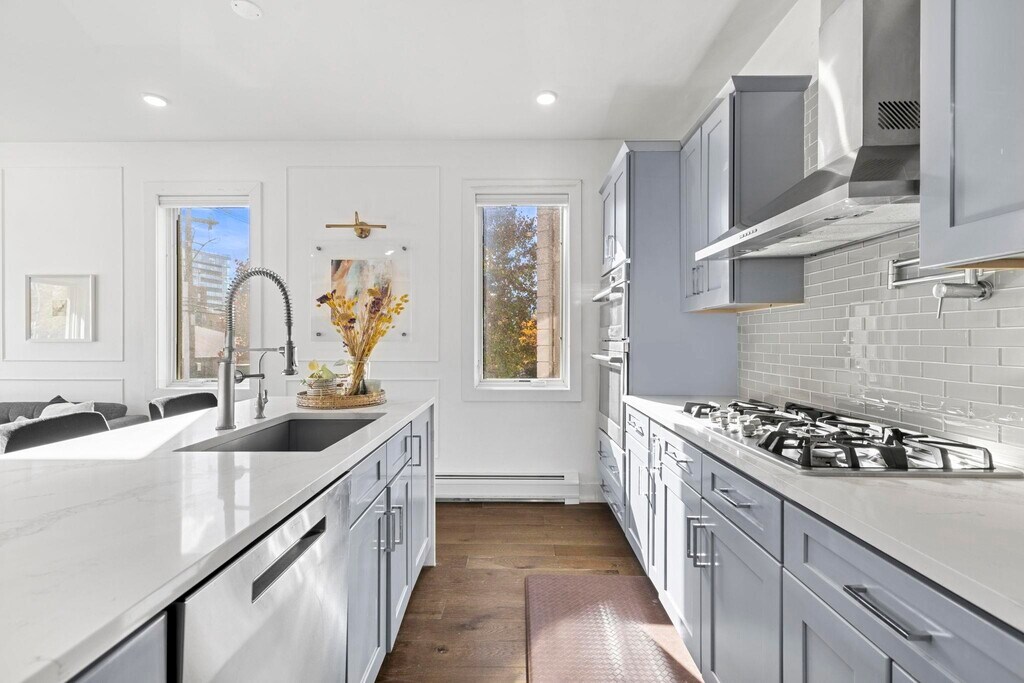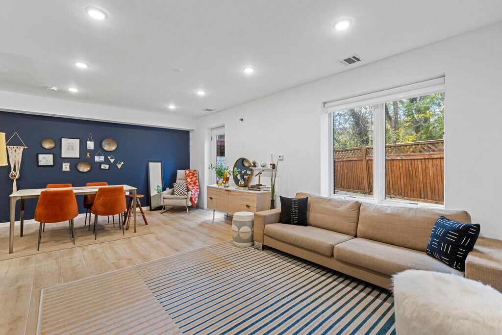 Experience refined living in this exceptional four-bedroom duplex, thoughtfully designed to deliver both elegance and comfort in one of Weehawken’s most sought-after neighborhoods. Masterfully styled with a publisher’s eye for detail and a marketer’s appreciation for lifestyle, this residence offers a rare combination of spaciousness, modern amenities, and private outdoor living. The main level welcomes you with an expansive open-concept living and dining area, framed by pristine hardwood floors and enhanced by sliding glass doors that invite abundant natural light and lead to a serene balcony retreat. The chef’s kitchen is a true centerpiece—anchored by a sophisticated center island and outfitted with a full suite of premium stainless steel appliances, including a refrigerator, dishwasher, wall oven with additional convection oven, sleek countertop range, and designer range hood. Four well-appointed bedrooms provide generous comfort, highlighted by a luxurious primary suite complete with its own spa-inspired en suite bathroom. The residence also features two additional full bathrooms, each finished with tasteful, modern fixtures. An attached 2-car garage and private driveway offer unparalleled convenience, while the dedicated laundry room enhances the effortless lifestyle this home provides. The ground floor adds versatility with a bonus space featuring a kitchenette, ideal for guests, a home office, or an elevated recreation area. Outdoors, discover your private backyard sanctuary—a coveted amenity perfectly suited for alfresco dining, relaxation, or refined entertaining. With its seamless blend of luxury, comfort, and thoughtful design, this Weehawken duplex promises an elevated living experience just moments from premier transit options, waterfront parks, and world-class dining.