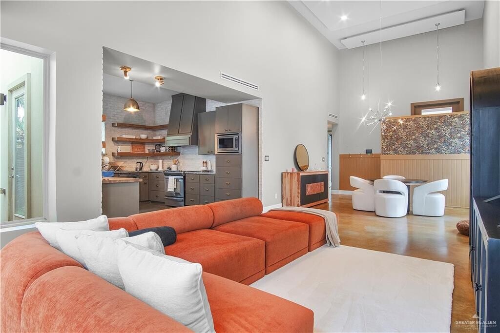 Stunning corner lot home in North McAllen,offering both charm & convenience for future owners. Built in 2014,this spacious residence boasts 2,250+ sq ft of living space,featuring a 4/3.5/2 design. Inside,you’ll find high ceilings & beautifully stained concrete floors,access to 2 inviting patios,& a versatile office/playroom. With a split bedroom design,the principal bedroom boasts a large walk-in shower & garden tub + a spacious walk-in closet.Designed with energy efficiency in mind,this house offers modern comfort & reduced utility costs. Located near a major thoroughfare,this home offers easy access to the mall & airport via Bicentennial Blvd. The area is rich with entertainment venues,restaurants,& shopping centers as well as the highly anticipated development known as The District not to mention Perez Elementary & Morris Middle School are a short drive away. Enjoy your evenings privately or as you entertain without the constraints of an HOA; Don't miss this opportunity.