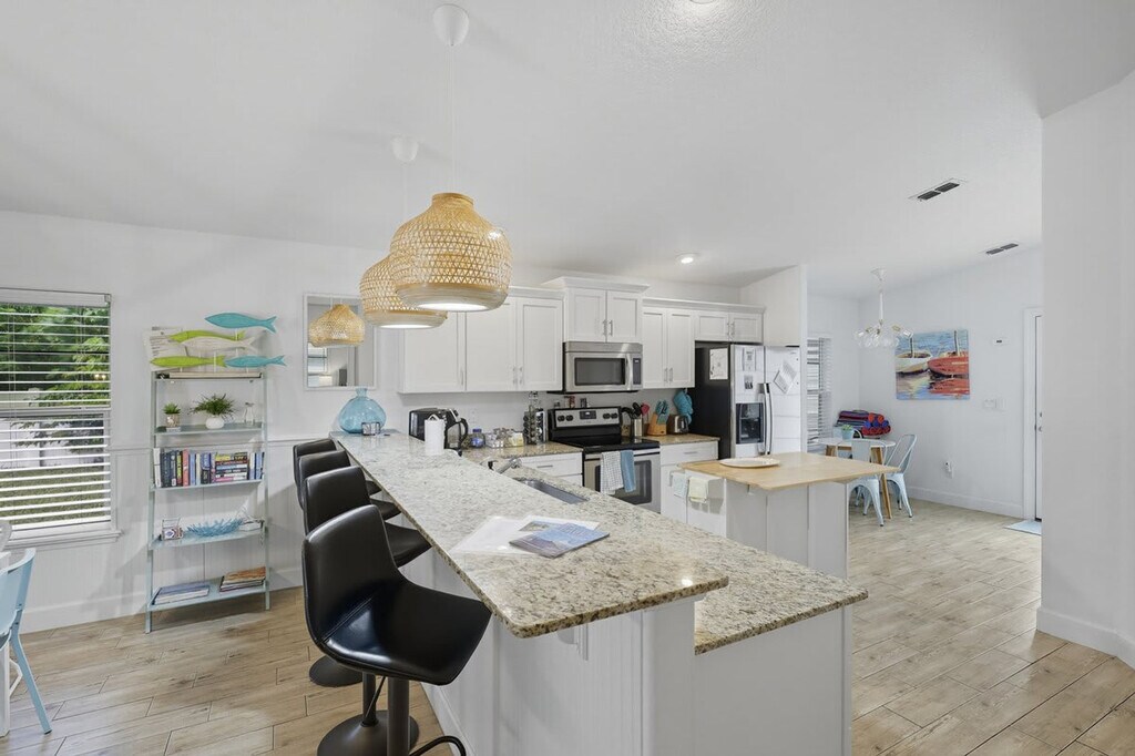 Welcome to this charming beachside retreat in the unique oceanside community of Malacompra at Hammock in Palm Coast. This 3-bedroom, 2-bathroom home sleeps 8 and features a fully fenced front and back yard, making it pet-friendly. Enjoy a brand-new heated in-ground pool and a warm, cozy interior, perfect for a memorable getaway. Located just a short walk, bike ride, or golf cart drive to the beach, and steps from Bing’s Landing State Park and boat launch, this property is ideally situated for coastal adventures. An added bonus: bring your boat, RV, or camper as the home offers side parking with a 50Amp electric hookup. The family room is designed for relaxed evenings together, featuring a 65" smart TV, comfortable leather sofa, and armchair. Gather at the spacious dining table that seats eight, with additional bar seating for four, perfect for family meals or hosting friends. The fully equipped kitchen is stocked with a variety of dishes, cookware, and high-quality appliances, and includes a cozy breakfast nook overlooking the beautiful pool area, ideal for morning coffee or quick bites. Let us know if you would like to add a pool heater for $287 per week, $50 daily for shorter stays, or $200 per week on longer stays. Pets are welcome at $100 per pet. Malacompra is home to Malacompra Park, which features pristine beaches, scenic walking and biking trails, and excellent spots for fishing, picnicking, and surfing. It’s also popular for its proximity to Bings Landing Park and boat launch, as well as Washington Oaks Gardens State Park, where you can explore unique coquina rock formations, formal gardens, and hiking trails. Minutes to Marineland Dolphin Park and historic St Augustine, this neighborhood is ideal for outdoor enthusiasts, offering easy access to biking and walking trails that wind through maritime forests and along the coast. Its quiet, residential feel combined with the beauty of the natural surroundings makes Malacompra a hidden gem in Palm Coast for those seeking a serene and scenic retreat. You will need a car, golf cart, or bicycle to get around the area. You can also walk to a few restaurants, the beach, and parks nearby. A rental agreement must be signed to confirm your stay and receive your check-in instructions. If the propane tank for the gas grill is empty, you can exchange it at any Publix Supermarket. Registration Number: 28--7 [SI]