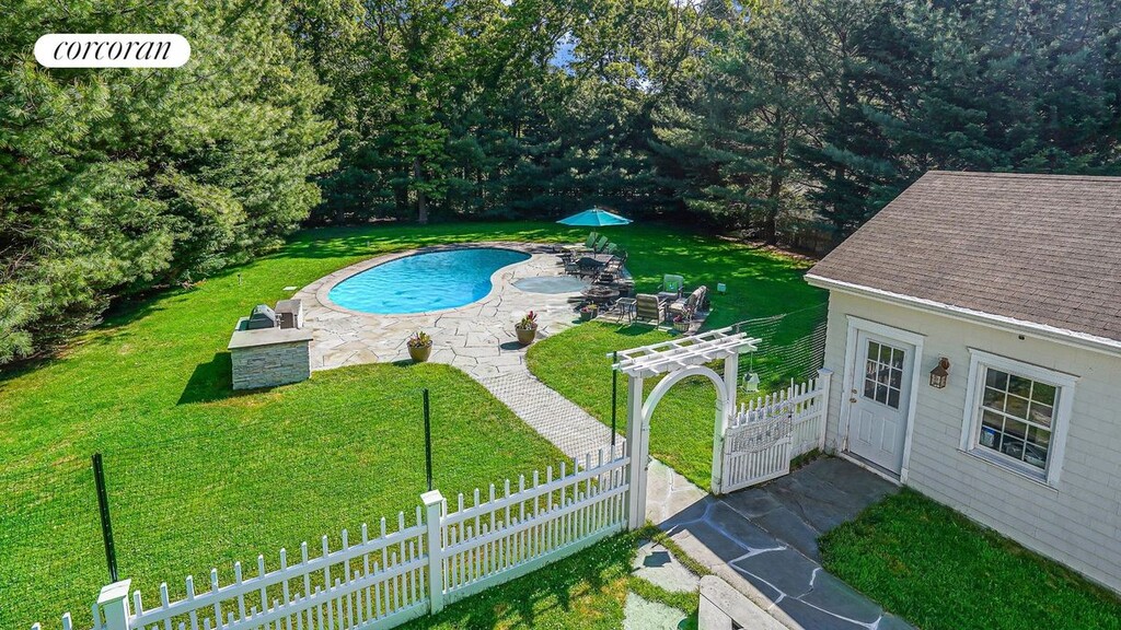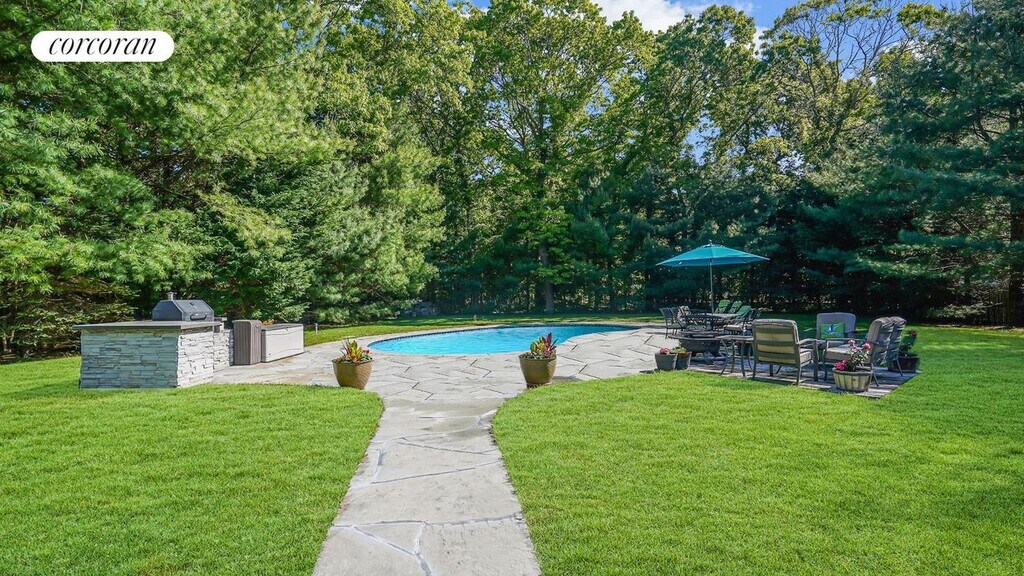 Welcome to your Hamptons Summer Retreat near beautiful 3-Mile Harbor, where convenience meets luxury. This immaculately maintained 4-bedroom, 4-bathroom home offers tranquility on approximately three-quarters of an acre, surrounded by lush greenery for the ultimate privacy. Located near marinas, restaurants, and downtown shopping, this haven provides easy access to all that the Hamptons has to offer. Spend your days exploring the nearby beaches, indulging in boating adventures, or dining at harbor-side restaurants, all just moments away. Step into your own private retreat, where the backyard beckons with a salt-water pool, built-in barbecue area, and fire pit, perfect for summer gatherings or quiet evenings under the stars. With access from all three floors, the outdoor space seamlessly integrates with the home's interior, offering ample room for relaxation and entertainment. The second-floor Master Suite boasts its own deck overlooking the backyard oasis, while the first floor features an en-suite bedroom, a Queen-size bedroom, and a fourth bedroom with two twin beds. The kitchen is equipped with high-end appliances, including a wine fridge, making meal preparation a breeze. For added entertainment, the basement offers a spacious area complete with a pool table, TV, washer/dryer, and another full bathroom. Central air conditioning ensures your comfort throughout your stay. [[Rental Registration # 24-1,452]]