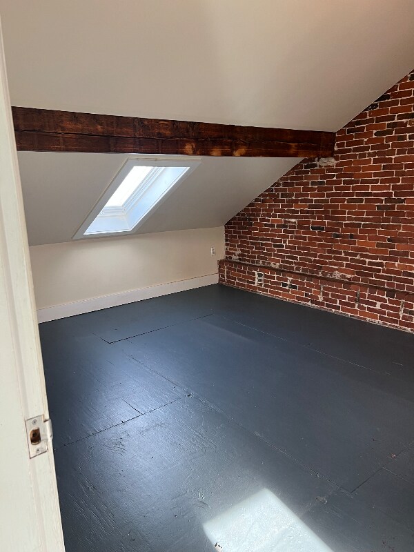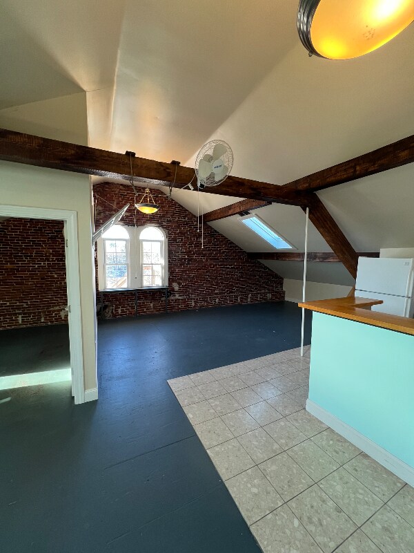 Property Id: 2295973 Newly painted , one bedroom, one bath 3rd floor apartment in historic school house. Very large, open concept kitchen/living room. High ceilings, exposed beams, brick walls, light filled and freshly painted. Gas heating. Tenant pays heat and cable. Landlord covers electrical, sewer, water, trash, snow removal, and common maintenance. On-site coin operated laundry and on-site parking. Close walk to down town/ main street with grocery store, restaurants, and shops...walk to parks and waterfront. 1-year lease minimum No Smoking/No pets Contact: