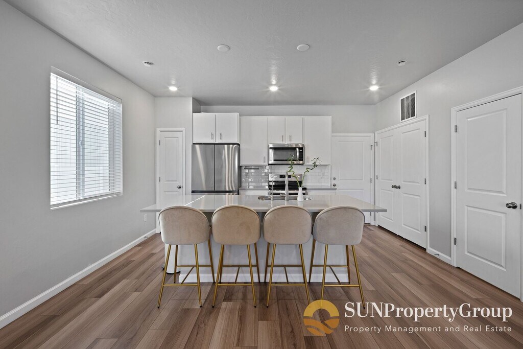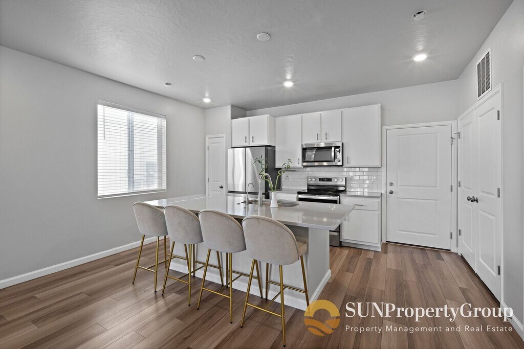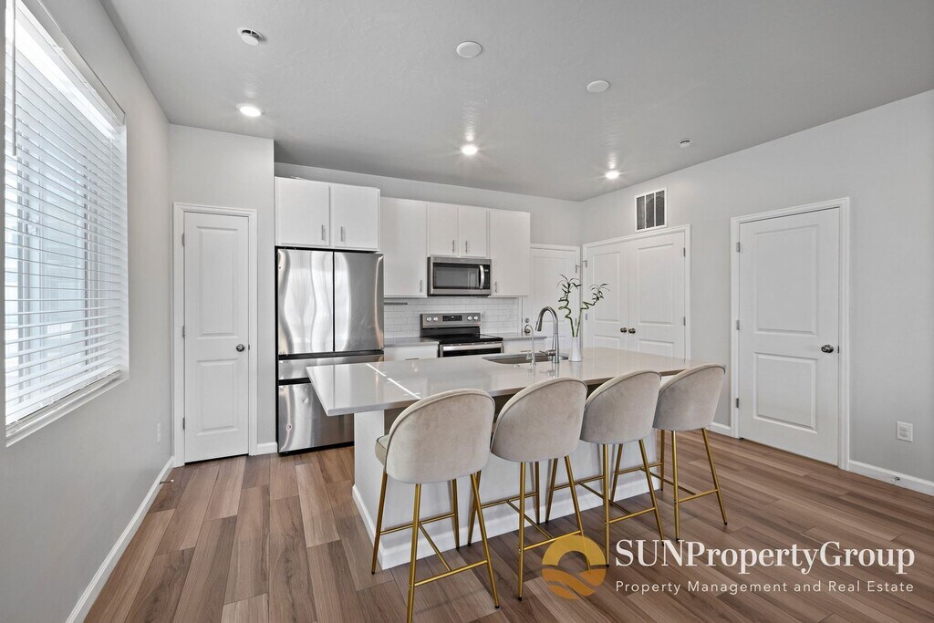 AVAILABLE DATE: NOW! LEASE LENGTH: 12-18 Months TYPE: Duplex SQUARE FEET: 1,449 PARKING: 2 Car Garage + Driveway FEATURES: - 3 Bedrooms - 2 1/2 Bathrooms - Open Concept - Large Living Room - Beautiful Kitchen with Large Island For Extra Seating - Huge Windows for Natural Lighting - Large Master Bathroom Ensuite with Dual Vanity - Large Master Walk In Closet - Enclosed Front Courtyard FEES: - Application Fee(s): $55 / per person - Rent Payment: $2,100 / month - Security Deposit: $2,000 ($300 Non-Refundable) UTILITIES: - Water/Sewer/Trash: Resident Pays - Gas: Resident Pays - Electric: Resident Pays RENTAL CRITERIA: - Minimum of 620+ credit score (no bankruptcies or open collections) - Verifiable rental history - Must make 3x rent amount as a household - No more than 3 unrelated occupants will be allowed ** For a complete list of all rental criteria please visit: YARD CARE: HOA is responsible for lawn care. PETS: Pets are NOT permitted on this property. NO smoking or vaping is permitted in or on this property. SHOWING INSTRUCTIONS: To schedule a showing please visit or reach out to one of our leasing specialists at (Text Preferred) TO APPLY: Applications can be completed online at . Click "properties", then click "apply now" on the property that you are interested in. Everyone over 18 years or older will need to submit their own separate application. PROPERTY MANAGER: Sun Property Group P.O. Box 901375 Sandy, Ut 84090