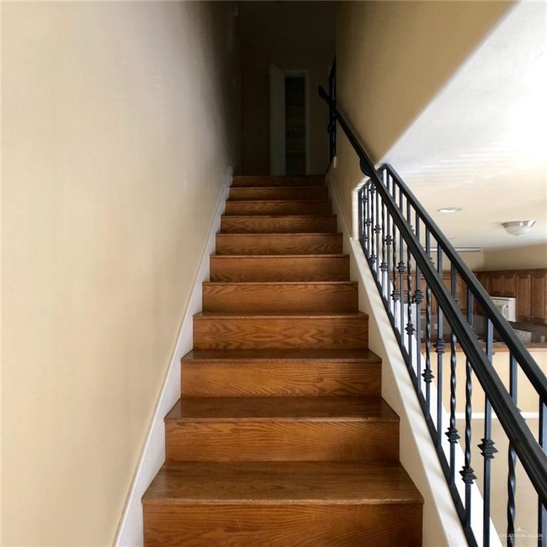 Gated community! Nice and clean 2 bedroom 2 bath 2-story townhouse conveniently located across the street from Sharyland High School. Kitchen includes granite-top counters,refrigerator,stove,dishwasher,microwave,washer & dryer. One full bath on the bottom floor with a single-vanity and stand-up shower. Extra storage space under the staircase. Vinyl floors on the bottom,laminate wood on the stairs,hallway and bedrooms. Two spacious bedrooms upstairs with one full bath that has a tub/shower combo and long single-vanity. Designated parking for 2 vehicles. One small pet allowed up to 15 lbs with a one-time non-refundable $100 pet fee and $25/month. In order to qualify the combined gross income must be a minimum of $2700/mo. Tenant is responsible for water and electricity (AEP). Application fee is $45/adult. Good credit required.
