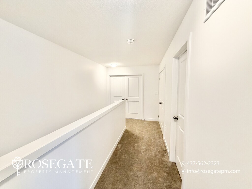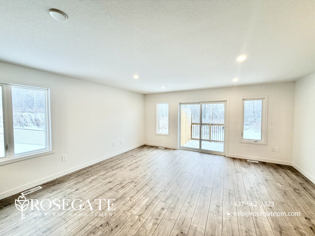 Pet-Friendly 4-Bedroom Detached Home with Garage & Backyard in Cambridge Welcome to 27 Oak Frst Cmn, Cambridge — a spacious and modern detached home offering approximately 1,800 sq. ft. of beautifully designed living space. Featuring 4 bedrooms and 3.5 bathrooms, this property is ideal for growing families or professionals seeking space, comfort, and privacy in a desirable Cambridge neighbourhood.The bright, open-concept layout includes generous living and dining areas, a well-appointed kitchen, and multiple bathrooms for added convenience. The primary bedroom offers a walk-in closet and access to a private balcony, creating a peaceful retreat. Large windows throughout the home bring in abundant natural light, enhancing the warm and welcoming atmosphere.Enjoy outdoor living with a private backyard, perfect for entertaining or relaxing. Additional features include two parking spaces (full driveway and garage) and small pets allowed. Professionally managed by Rosegate Property Management, this home is close to schools, parks, shopping, and transit—offering premium detached home living in Ontario.