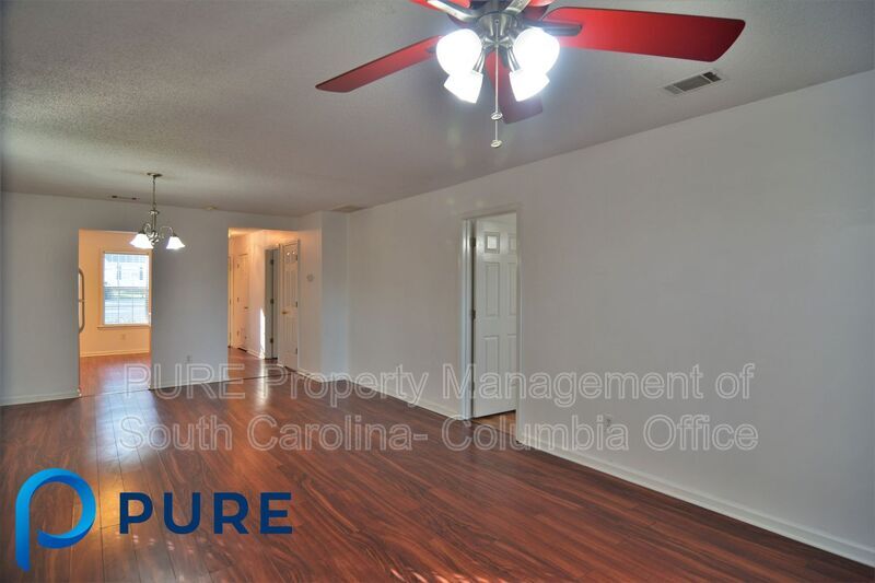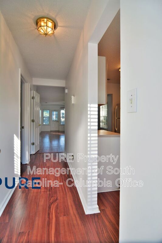 Charming 2 bedroom, 2 bath patio home in the Settler Place neighborhood in the Harbison area of NW Columbia. Home sits on a cul-de-sac, has a two-car parking pad, one-car garage, and fenced backyard with a patio. Beautiful, low-maintenance laminate hardwood flooring throughout. Galley style kitchen includes a white smooth-top electric stove, dishwasher, and refrigerator. Open floorplan, dining area open to living room with ceiling fan. Master bedroom has a ceiling fan, walk-in closet with washer/dryer connections, and full bathroom with single vanity and tub/shower. Second bedroom off entry has an attached full bathroom also accessible from entry hall, perfect for a guest room or office. Convenient to I-26 and 1-20, Harbison Recreation Center, and Lake Murray. Richland 1 Schools. " Only 3 pets allowed" All PURE Property Management residents are enrolled in the Resident Benefits Package (RBP) which includes renters insurance, HVAC air filter delivery (for applicable properties), credit building to help boost your credit score with timely rent payments, $1M Identity Protection, move-in concierge service making utility connection and home service setup a breeze during your move-in, our best-in-class resident rewards program, and much more! More details upon application. This property comes equipped with Gig-Speed Internet at $65.00/month! Amenities: air conditioning, patio, fenced backyard