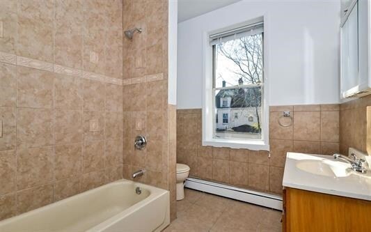 Located on a quiet tree-lined street, this two bed + den, one bath home offers you a definitively residential feel with all the conveniences of city living. Interior home features a spacious and open floor plan with large eat in kitchen with an abundance of cabinet storage, stainless steel appliances and great natural sunlight. Renovated bathroom includes a glass enclosed shower with bath tub and double vanity sinks. Master bedroom has plenty of closet space and a private office/bonus room. Second bedroom on opposite end making it great for shares. Bonus features include built-in high efficiency cooling units, a cozy shared front porch and heat and hot water included in the rent. This is one of the most desirable blocks in The Heights within minutes to Hoboken via 100 Steps, Central Ave shopping district, delis, grocery stores, laundromats, restaurants and Riverview Park. Commute to NYC with easy via buses/jitneys to NYC on your corner. Come experience all this thriving and safe neighborhood has to offer. Pets considered case by case basis. Available 4/1!