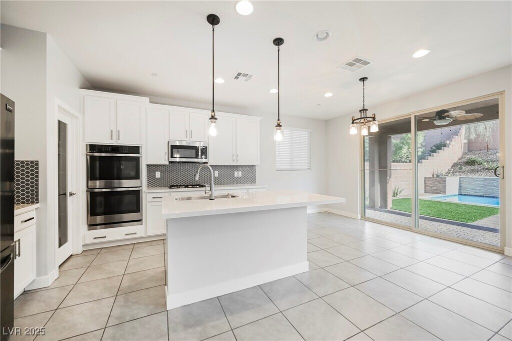 This stunning two-story pool home combines comfort, style, and resort-inspired living! Featuring 3 spacious bedrooms, 2.5 baths, and a private backyard oasis with a sparkling pool and sun deck—perfect for relaxing or entertaining under the Nevada sun. The upgraded kitchen offers double ovens, white cabinetry, stainless steel appliances, and a large island ideal for gatherings. Located in a gated enclave within the prestigious Lake Las Vegas Master Planned Community, residents enjoy access to world-class golf, water sports, and the vibrant restaurants and shops of Lake Las Vegas Village. This home will be ready for move-in before the New Year! Just in time for you to experience the ultimate in luxury living!