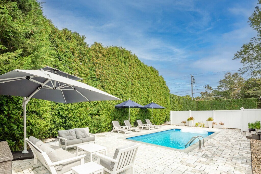 This fresh, beach-inspired South of the Highway Westhampton summer rental offers a bright, turnkey setting for an effortless summer vacation. Recently painted and newly furnished, the home feels crisp, clean, and thoughtfully updated throughout. Set far south on a privately hedged and gated corner lot, this 4-bedroom residence provides both space and privacy. Two spacious king size en-suite bedrooms offer comfortable accommodations upstairs, while two additional guest bedrooms on the ground floor feature three full beds between them. With four full bathrooms in total, the layout allows for ease and flexibility for guests. The bright white kitchen is fully equipped and opens to the dining area, flowing seamlessly to the outdoor dining and BBQ space-ideal for relaxed summer evenings and entertaining. Back inside, enjoy both a cozy living room and a separate media room that leads directly to the patio and updated pool area, creating an effortless indoor-outdoor lifestyle. The generous yard and pool area provide ample space to relax, unwind, and play. Conveniently located near the shops, restaurants, and pristine sandy beaches of Westhampton Beach, this property delivers the comfortable, coastal summer experience you are seeking. [[Rental Registration # RA240459]] EH RR #: RA240459 Rental Terms: May: $15,000 July - Labor Day: $65,000 August: $30,000 April: $10,000 July: $30,000 June: $22,000 Memorial Day - Labor Day: $78,000 August - Labor Day: $35,000 September: $25,000
