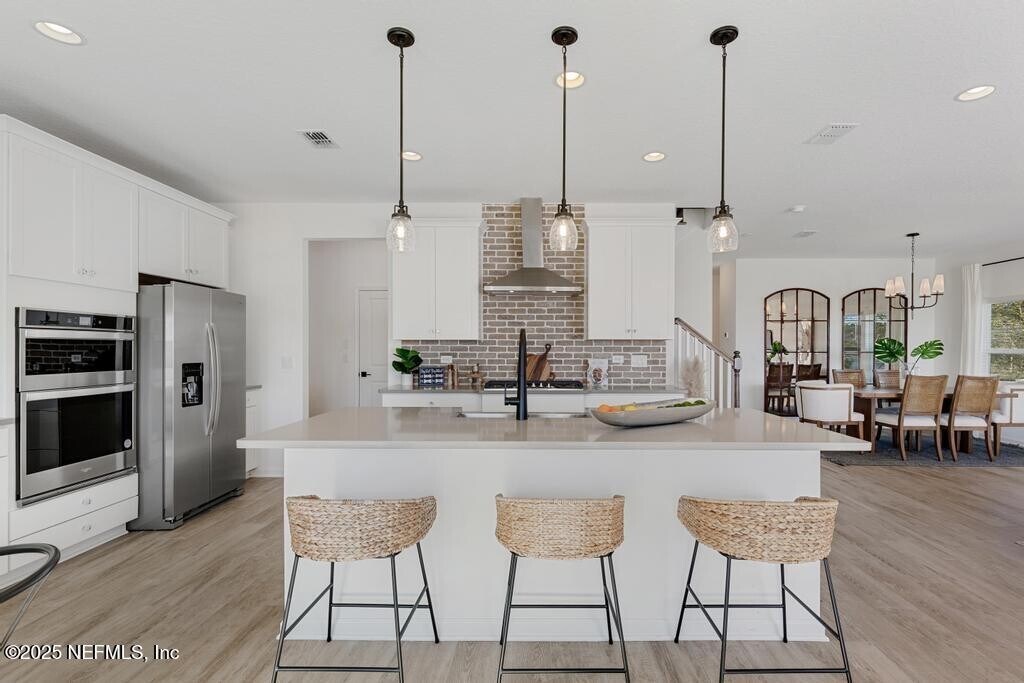 FORMER MODEL HOME - Ready for Move-In 4/1/26 in Beacon Lake! Long view of the lake,only one neighbor to the right of the house,AMAZING lot. This Driftwood model offers 3 spacious bedrooms,a dedicated office,and an upstairs loft,providing flexible living spaces for work,play,and relaxation. Fiber Internet (Platinum - 1 GIG) and LAWN CARE are included,making this home as convenient as it is beautiful. Located in the highly desirable Beacon Lake community,this 2-story home sits on an oversized lot with spectacular water views,offering privacy,tranquility,and a perfect backdrop for morning coffee or evening unwinding. Inside,you'll find thoughtful designer touches throughout: a single tray ceiling in the primary bedroom and loft,durable vinyl plank flooring,wood stair spindles,and plush carpet with an 8 lb pad for added comfort. The gourmet kitchen is a chef's dream,featuring a natural gas 5-burner cooktop,high-end gas range,and a stylish thin brick ironworks backsplash,soft close drawers. The open-concept layout makes it ideal for entertaining and everyday living. Everyday convenience is a standout here. Beacon Lake offers quick access to I95,just about 2 miles away,for an easy commute north to Jacksonville or south toward Palm Coast. Daily essentials are close by,with Publix roughly 3 miles away and Lowes is about 2 miles away and so much more. Enjoy the coast with St. Augustine Beach approximately 15 miles away and Jacksonville Beach about 22 miles away. For shopping and dining,you're about 20 miles from St. Johns Town Center,and when you want to enjoy local culture,historic downtown St. Augustine is roughly 12 miles away and downtown Jacksonville is about 25 miles away. This former model truly combines luxury finishes,modern connectivity,low-maintenance living,and a central location. Ready 4/1/26. MLS# 2128061