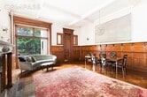Elegant Upper West Side Duplex with Private Garden Experience timeless sophistication in this parlor-level duplex with its own private garden, perfectly situated on a picturesque Upper West Side park block just steps from Central Park. Inside, soaring 12-foot ceilings, two spacious living areas, and three wood-burning fireplaces with original mantles create a warm, inviting atmosphere. This home offers three bedrooms, an additional den/office off the primary suite, and three beautifully renovated bathrooms. The windowed kitchen features a banquette breakfast nook and modern updates, while original prewar details—including oak and mahogany wainscoting, pristine shutters, parquet floors with decorative borders, and picture moldings—enhance its historic charm. Additional highlights include: Private garden oasis Flexible lower level with laundry and bonus space for a gym or study Extensive storage throughout, including a massive basement area Located at 27 West 87th Street, close to premier shopping, dining, public transportation, and Central Park.