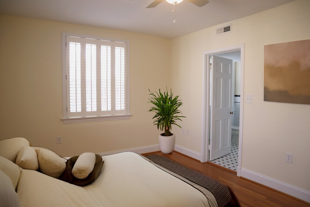 This incredibly charming and immaculately maintained 2nd floor corner unit overlooking the pool is an opportunity not to be missed. You will notice the custom plantation shutters and beautiful hardwood floors throughout the home. The spacious updated kitchen has granite countertops, stainless steel appliances, gas cooking, under cabinet lighting, tile flooring, and a second interior entrance for your convenience. The separate dining room opens into the living room with lots of windows for great light. The relaxing primary bedroom has a bright and updated private bath. Central air and heat (paid by tenant) and off street parking. The Locke Lane community is a rare blend of tradition and elegance located in the highly sought-after Westhampton district of Richmond, Virginia. This historic property offers proximity to unique and upscale dining, shopping, and entertainment in Libbie/Grove area, Carytown, Scotts Addition, Maymont Park and downtown Richmond. Locke Lane offers a lifestyle rich in old-world charm and modern-day luxuries. Features include a swimming pool and fitness facility, community grill and entertaining space– half of which is green space suitable for outdoor recreation. Pets considered on case by case basis.