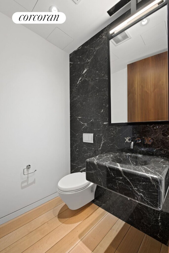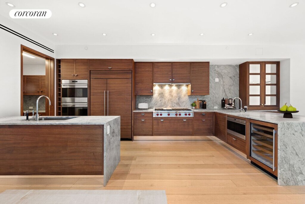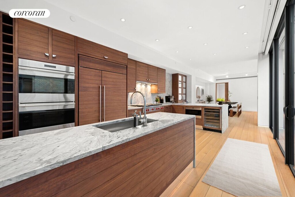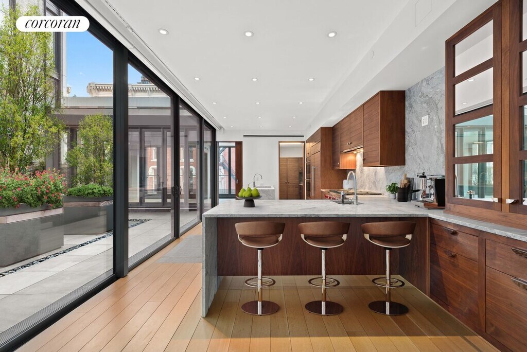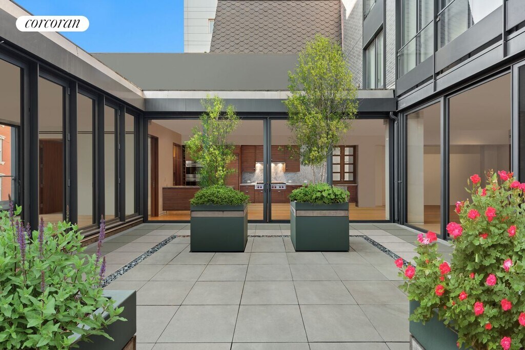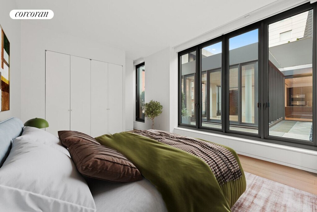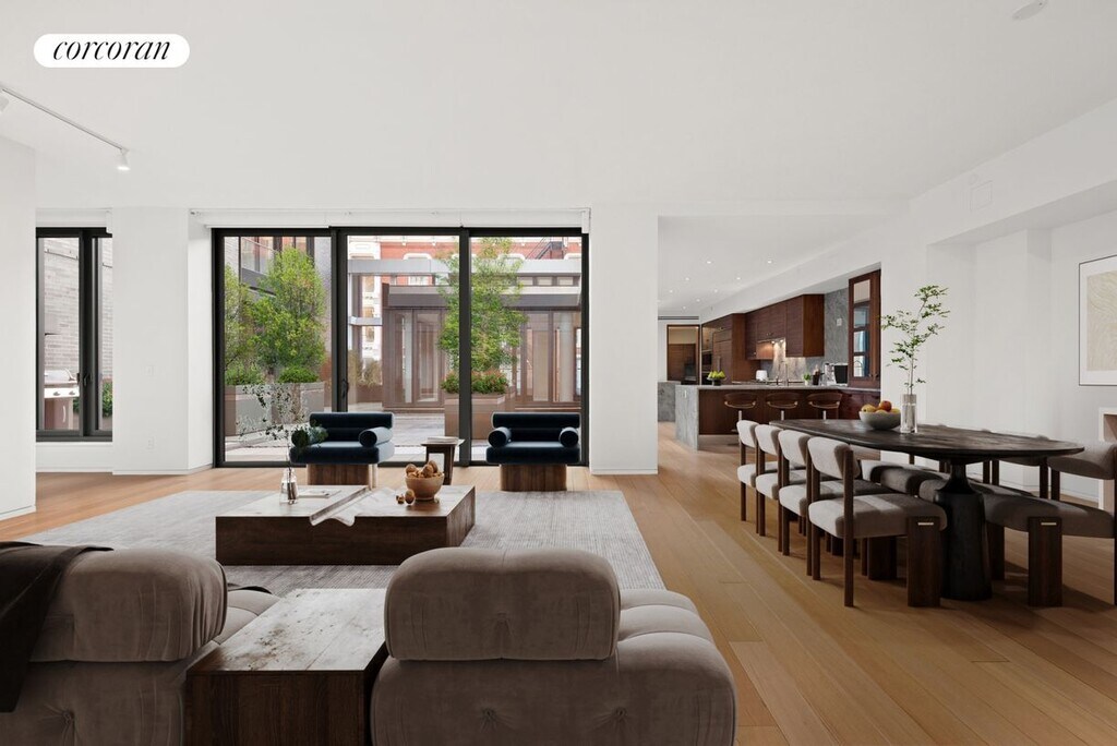 Enjoy remarkable indoor-outdoor living in this impeccable three-bedroom, three-and-a-half-bathroom designer showplace in a fantastic SoHo condominium building. Situated around two private courtyard spaces and lined with floor-to-ceiling windows, this phenomenal residence boasts gorgeous light and outdoor views in every room. Featuring Thomas Juul-Hansen interiors and architecture by Kohn Pederson Fox Associates, designer touches create a warm, sun-filled home equally well-suited for casual relaxation and lively entertaining.Wide-plank white oak floors and tall ceilings usher you inside to take in a stately great room spacious enough for generous living and dining areas. Tall sliding glass doors open the space completely to the private courtyard, creating a true indoor-outdoor living experience in the heart of the city. Nearby, the large and lavish kitchen is a work of design genius featuring Smallbone of Devizes cabinetry, marble waterfall countertops and state-of-the-art appliances, including a Wolf range, double oven, warming drawer and steam oven, a Sub-Zero refrigerator, plus a wine cooler and a dishwasher.The clever split-bedroom layout places each complete bedroom suite at opposite corners of the spacious home for maximum privacy and serenity. The massive master suite is lined with stunning neighborhood views and custom closets, including a windowed walk-in. The en suite master bath is covered, floor to ceiling, in large slabs of breathtaking marble that surround a dual-sink zebrawood vanity with LeFroy Brooks fixtures, a relaxing rain steam shower and a Toto toilet. The two additional bedroom suites, one off the entry and one off the kitchen, each boast leafy courtyard views, oversized closets and well-equipped en suite baths. A large entry closet and pantry nod to this home's phenomenal storage space, while the key-locked elevator access, in-unit washer-dryer, powder room and smart home controls add to this sunny abode's abundant conveniences.Completed in 2015, 27 Wooster is a sleek six-story condominium building on a tree-lined, cobblestoned block in the most serene stretch of SoHo. Building amenities include a 24-hour attended lobby, cold storage, fitness room, bicycle room and storage and parking. 27 Wooster is centrally located among SoHo's world-class dining, nightlife and shopping with abundant transportation options, including the A/C/E, 1, J/Z, N/Q/R/W and 6 trains, all within blocks.Seeing is believing!Upfront costs include first month rent, one month security, $20 credit check fee, condo application/move in fees