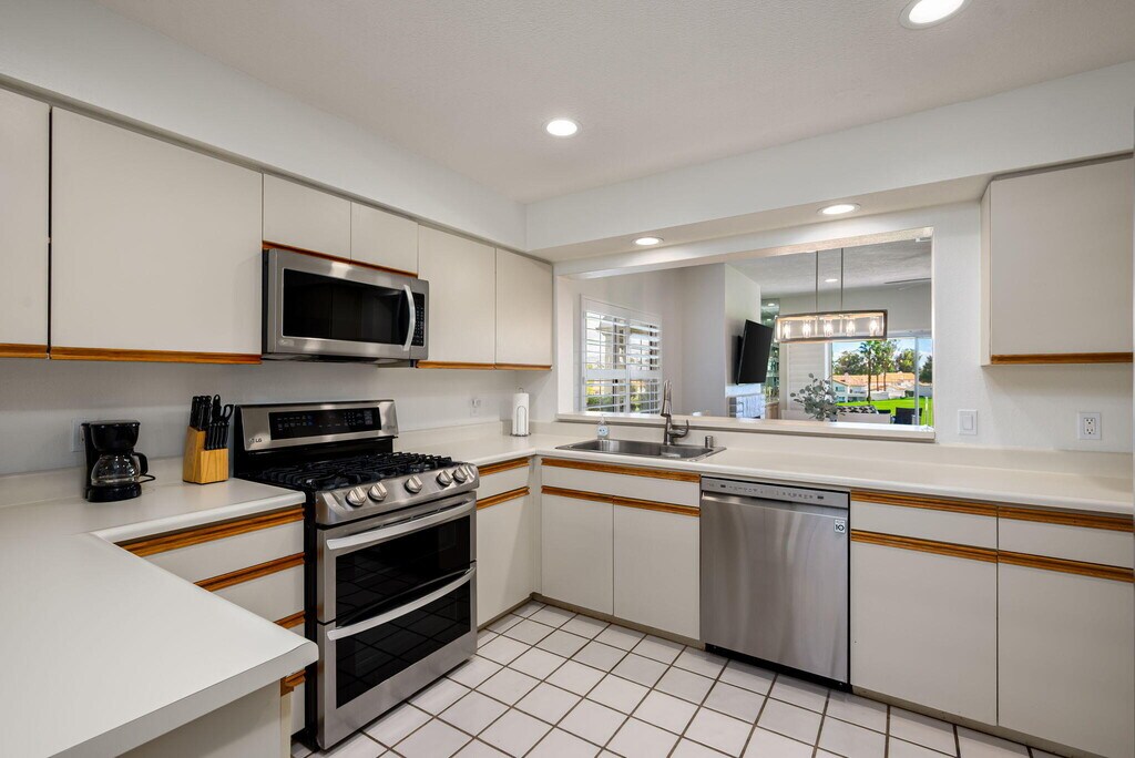 LONG TERM LEASE,FURNISHED,END UNIT,LOWER LEVEL,3-Bedroom,2.5-Bath condominium offers an Open Floor Plan with NEW LED LIGHTING,CEILING FANS,DOUBLE OVENS,EV CHARGING and FRESHLY PAINTED!! Plank Laminate Flooring and Ceramic tile floors is throughout this delightful home. The Master Suite is oversized with walk-in closet,built in shutters,generous size bathroom with separate tub/shower and dual vanities. Down the hall is the guest bedroom nicely separated from the main part of the home with its own private bath. Ideal for guests! The kitchen offers stainless steel appliances and a kitchen nook for additional seating. That's not all....The garage has been FINISHED WITH NEW PAINT AND EPOXY FLOORS! This home is NOT to be missed!! A perfect full time,2nd home or rental. Sit back and enjoy your oversized patio with BBQ and take in the highly sought after views of the Chocolate Mountains and 17th Fairway with plenty of room to entertain family and friends! A Perfect Retreat! Desert Falls is a Semi Private Championship Course,rated as one of the top 10 courses by the SCPGA and awarded a 4 -star rating from Golf Digests ''Best Places to Play''! You can Pay as you Play or they also offer a fantastic membership! Desert Falls Country Club is centrally located in the middle of the valley within walking distance to restaurants and shopping and only a few miles to top entertainment venues. Acrisure Arena *Home to the CV Firebirds*,Agua Caliente Spa & Casino,the McCallum Theatre and El Paseo: a 2-mile boulevard of upscale Galleries,Boutiques,and fine Dining Restaurants are all within just a few minutes' drive. Enjoy Tennis,Pickleball,Fitness Center,29+ Pools & Spas,Wi-Fi,Cable,There is always something to do in our Beautiful Desert!! Call Today For Your Private Tour!