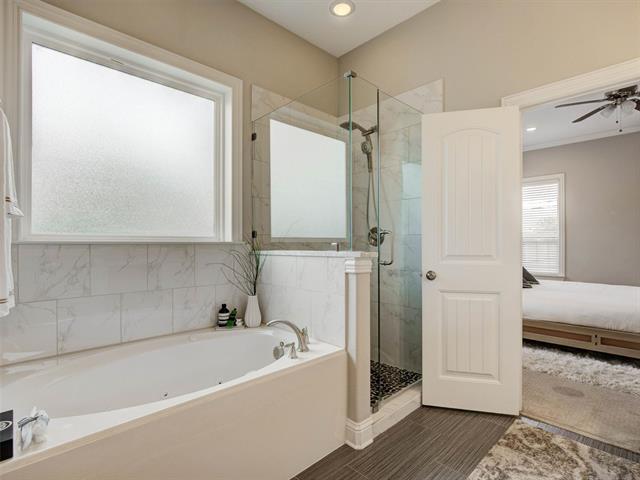 1920s sophistication captured in this modern day Craftsman style home built in 2016 located in the North Cliff Conservation District, Oak Cliff. Just 3 miles to Bishops Arts and 6 miles to DT Dallas. This elegant and functional living space includes a neutral color palette to compliment any design. Space includes a formal dining rm, living area, wood burning FP, kitchen with glass backsplash, SS appliances, Butlers Pantry, an oversized master bedroom and spacious ensuite bathroom with a standing shower, jetted tub. Secluded backyard, electric driveway gate, a detached 2 car garage with attic space. Enjoy your evenings on the covered back porch enjoying the beautiful sunset sky in North Cliff. Lease price includes all yard maintenance.