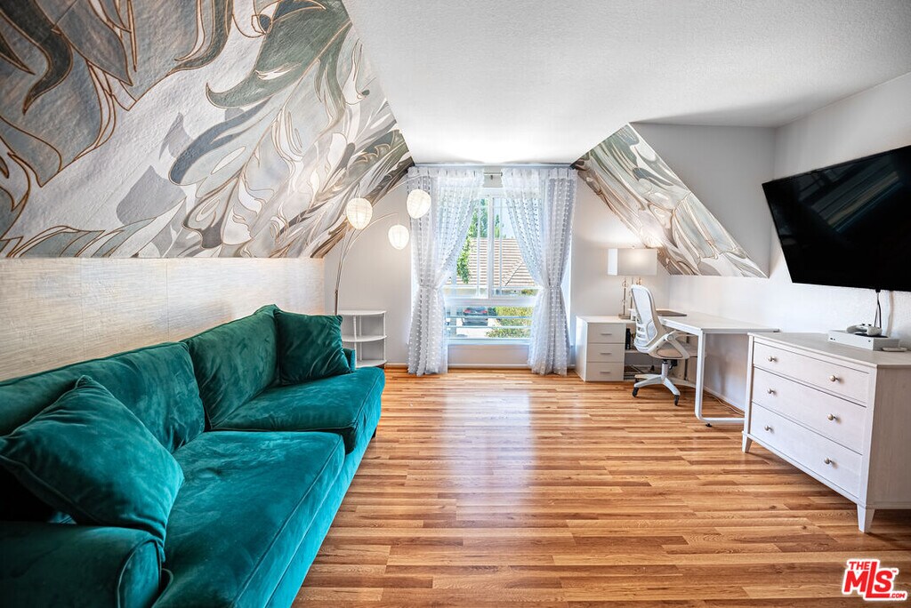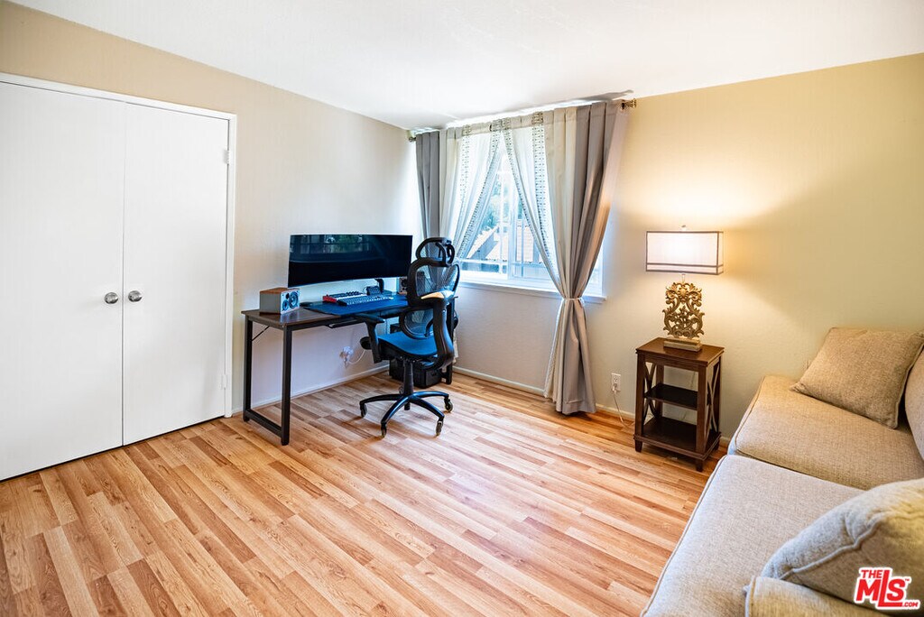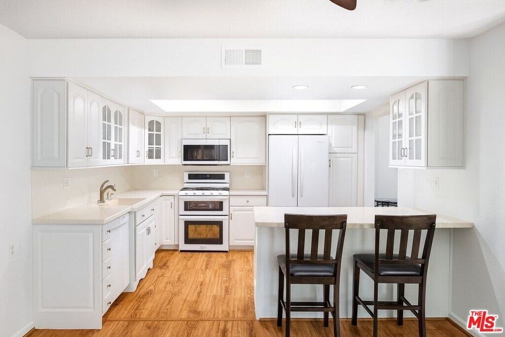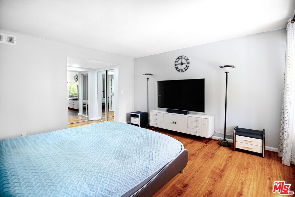 Gayane YaffaOne of the largest corner lots in Valencia Racquet Club! Rare find with unmatched lot size and location. This stylish 4-bed, 2-bath home boasts an open layout filled with natural light, soaring ceilings, fresh paint, and smart lighting. A bright white kitchen with a large island, glass-front cabinets, and recessed lighting connects to dining and family spacesideal for hosting. French doors open to a private wraparound backyard featuring a brick patio and plenty of room to garden, play, or add a future pool. The primary suite on the main level includes an updated vanity and ample closets. Upstairs, a large versatile bedroom with two walk-in closets and designer wallpaper offers space for a guest retreat, office, or studio. Two additional bedrooms share a full bath. Extras include security cameras, an oversized 2-car garage.The community offers a pool, spa, sports court, and playground, with large public parks and top-rated schools just minutes away.