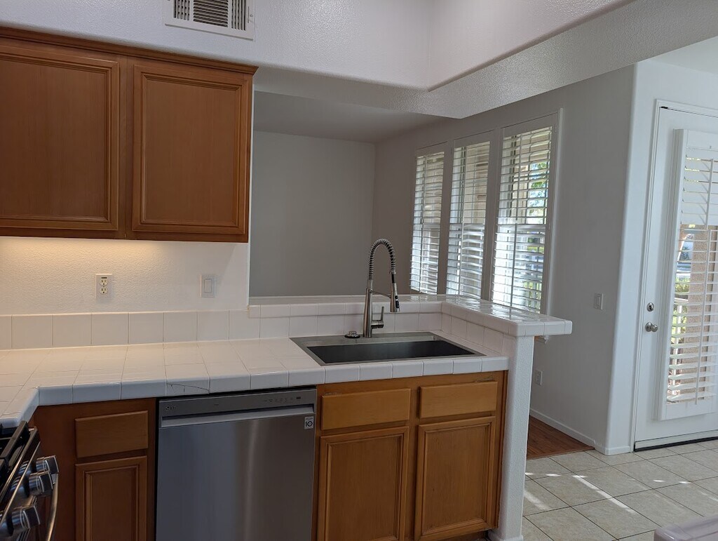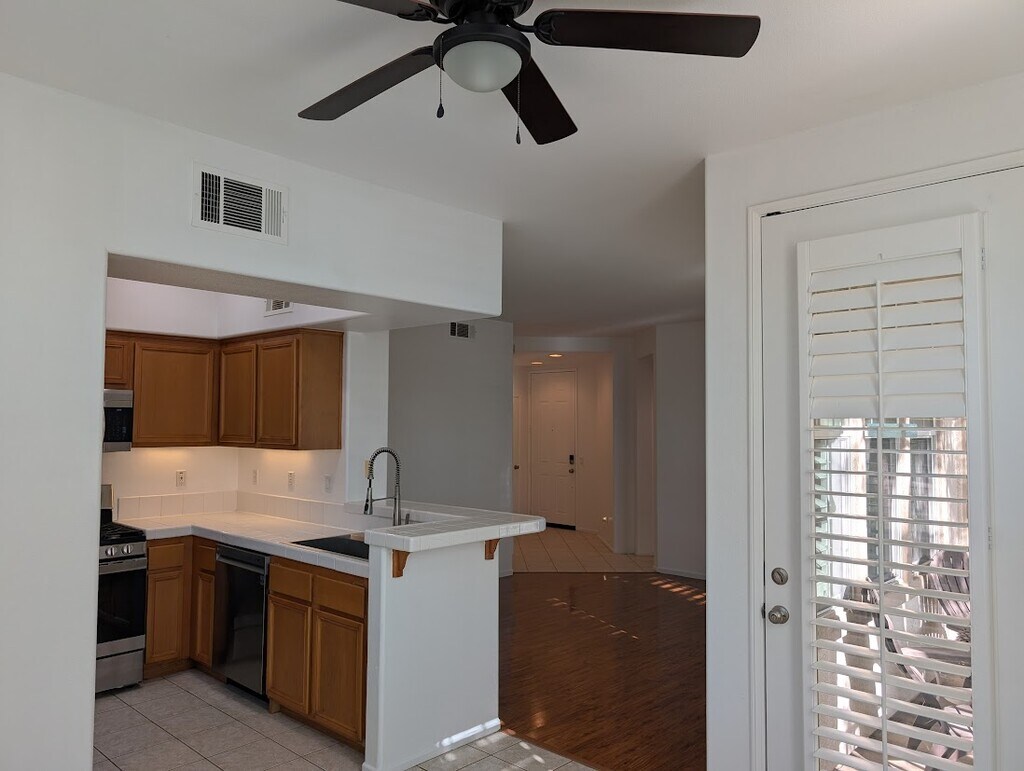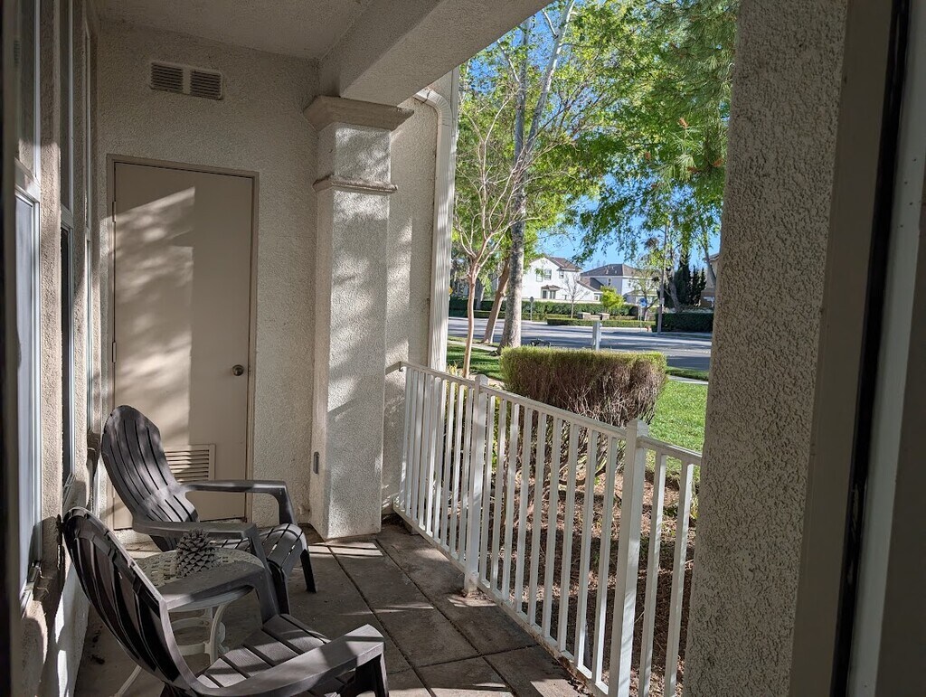 Beautiful Lower-Level Condo in the Highly Desirable Bridgeport Community of Valencia. Welcome to this light and bright lower-level condominium located in the sought-after Bridgeport area of Valencia. This well-maintained home offers a spacious and functional floor plan with approximately 1,046 square feet of comfortable living space. The inviting living room opens to the dining area and features plenty of natural light, creating a warm and welcoming atmosphere. The kitchen offers abundant cabinetry and counter space, making it ideal for everyday living and entertaining. The primary suite features a large bedroom, walk-in closet, and private bathroom. A generously sized secondary bedroom with its own walk-in closet is located near the second full bathroom, making it perfect for guests, family members, or a home office. Enjoy outdoor relaxation on the private patio just off the living area. Additional conveniences include in-unit laundry with stackable washer and dryer, and a two-car garage located just steps from the front door. Residents enjoy access to Bridgeport's beautiful lakes, paseos, parks, and community amenities, along with close proximity to shopping, dining, award-winning schools, and convenient freeway access. Available for immediate occupancy.