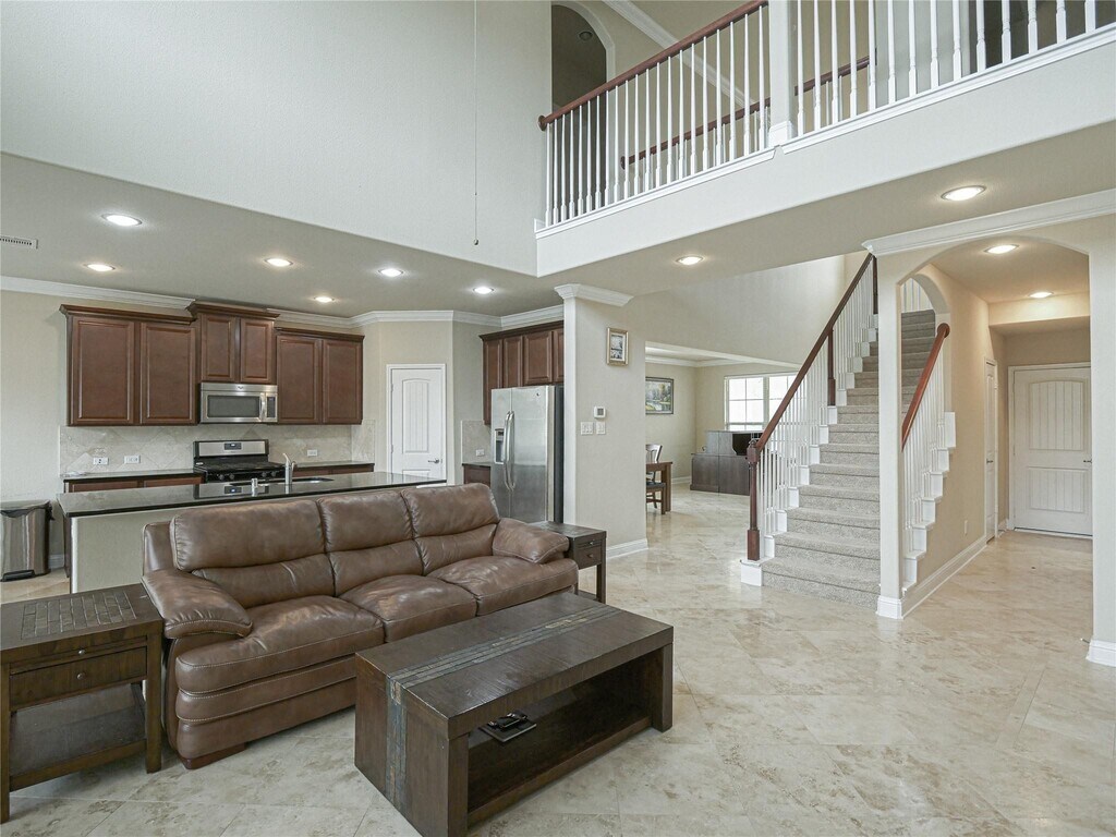 Stone and Brick Elevation,Front Porch and Balcony,Covered Patio All Stainless Kitchen Appliances,Refrigerator,Washer & Dryer to remain,42'' Cabinets,Under cabinet lighting,Granite Counters with backsplash,Laminate Wood Flooring,Upgraded Carpeting in Bedrooms & Game Room up,Walk out Balcony with Bird's Eye View,Open Concept for E-Z Entertaining! Better Than New with Sprinkler System for keeping your beautifully landscaped yard! 3 Bedrooms w/2 Baths up. Don't hersitate to schedule a showing to have a look!!!! MLS# 69796762