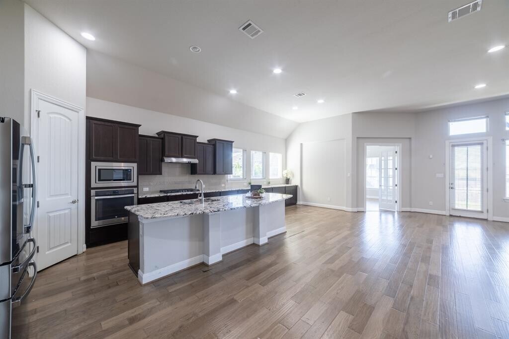 Welcome to Leander where the schools are great and the neighbors are nice. This home has ample space for a growing family or children that need room to run. The living and kitchen are open and warmed by a gas fireplace. The kitchen is filled with cabinets for storage and counters to entertain. The sunsets from the back yard are breathe taking with no side neighbors just green space. Looking for more than a year lease, no problem.