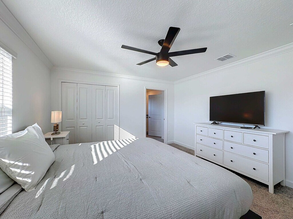 Experience the excitement of the new Epic Universe park this May 22nd and feel at home in this luxurious townhouse at Storey Lake Resort. With its private pool, fully equipped kitchen, and prime location near Disney and outlets, this home offers unbeatable comfort just minutes away from top attractions. Enjoy the convenience of self check-in and free parking, making your stay hassle-free. This charming townhouse features four bedrooms and a private pool, with heating available for an extra fee. The fully equipped kitchen, Wi-Fi, and complimentary access to all resort amenities, including a water park, gym, spa center, heated swimming pools, lazy river, beach volleyball field, basketball, and mini-golf (additional fee), ensure a delightful stay. The living room with a smart TV and dining room for eight people provide ample space for relaxation and entertainment. Optional paid add-ons include BBQ grill, pool heating, pack and play, high chair, early check-in, and late check-out. Please inquire about availability for these services prior to your stay. Located just 5 miles from Disney World and 12 miles from Universal Studios, this townhouse is perfectly situated for exploring Kissimmee's attractions. With easy access to transportation options like SunRail Station and ride-sharing services, getting around is a breeze. Nearby shopping includes The Loop Shopping Center and Orlando International Premium Outlets, while a variety of local restaurants and supermarkets are within close proximity. Guests must be at least 18 years old to book and no unregistered guests are allowed. Smoking, drugs, and pets are prohibited inside the home. To access the resort, guests are required to share a guest list to create and share QR codes. Essentials are provided for the first night only, and a laptop computer is not included. The property is exclusively for vacation use and filming or use as a warehouse is not permitted. [SI]