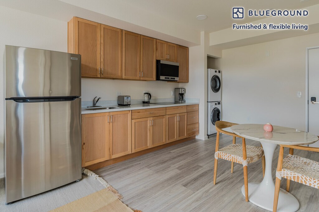 Show up and start living from day one in Berkeley with this comfortable one bedroom Blueground apartment. You’ll love coming home to this thoughtfully furnished, beautifully designed, and fully equipped South Shattuck home. (ID #SFO1814) The advertised rate of $5,035/month is the lowest available price, based on a 5 month(s) stay with a move-in date of August 4, 2029. If you’re looking for a 1-year stay, the rate is $5,161/month. Rates vary depending on the duration of stay, season, and other parameters. For exact pricing and additional pricing components, please visit our website and enter your desired move-in and move-out dates. The rate is applicable when billed upfront; it can be higher if billed in multiple payments. Brokers are welcome to reach out. Were you looking for an unfurnished lease? Try Blueground instead and upgrade from unfurnished to furnished living: - Furnished at rates comparable to unfurnished - No setup or furniture costs - save thousands - Move-in ready - save time, just bring your suitcase Designed with you in mind As with any Blueground apartment, you’ll find a thoughtfully designed space complete with beautiful furniture and a fully equipped kitchen in this one bedroom property. And, thanks to our superior quality mattresses, fully stocked linens, and towels, you can relax knowing you’ll always feel comfortably at home. When you’re ready for some fun, you can take in the Berkeley vibes or bring the entertainment to you with the premium wireless speaker or smart TV. This apartment also offers in-apartment laundry. Sleeping arrangements Queen Bed, 63in/160cm Amenities Building amenities unique to this one bedroom apartment include an on-site: - Dryer - Elevator - Washing machine - Parking - Pets allowed Arrival and ongoing support The entire apartment is yours to enjoy! Throughout your stay, you’ll have access to our Client Experience team through the Blueground App. You can schedule additional cleanings, submit maintenance requests, and view our neighborhood recommendations with just a few taps. We’ll share all details upon confirmation of your stay. Other things to note This Blueground apartment has flexible lease options, allowing you to book it for one month, a year, or more. Pets are welcome, though weight limits and breed restrictions apply and may incur fees. We take great pride in ensuring every photo displayed is shot in our own units with our actual furnishings. That said, we regularly refresh our decor and furniture arrangement, which may differ from what’s pictured. [SI]