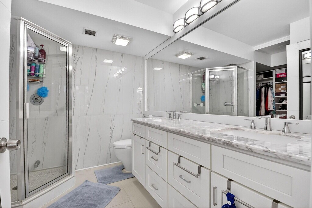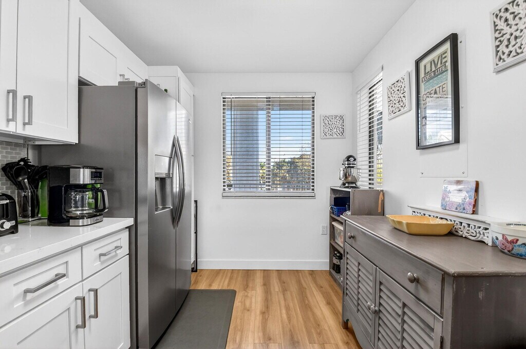 Spacious 3rd floor renovated and move in ready 2 bedroom,2 bath condo overlooking the Whitehall community pool. Long balcony with 2 entrances,new HVAC,luxury vinyl plank flooring,neutral colors,modern,updated kitchen with white shaker style cabinets and stainless steel appliances. With 1437 sq ft of living space,there is an extra large dedicated laundry room,part of which can be used as extra storage or an office space. Central location,close to shopping,restaurants,I-95 and PBIA. MLS ID R11164611