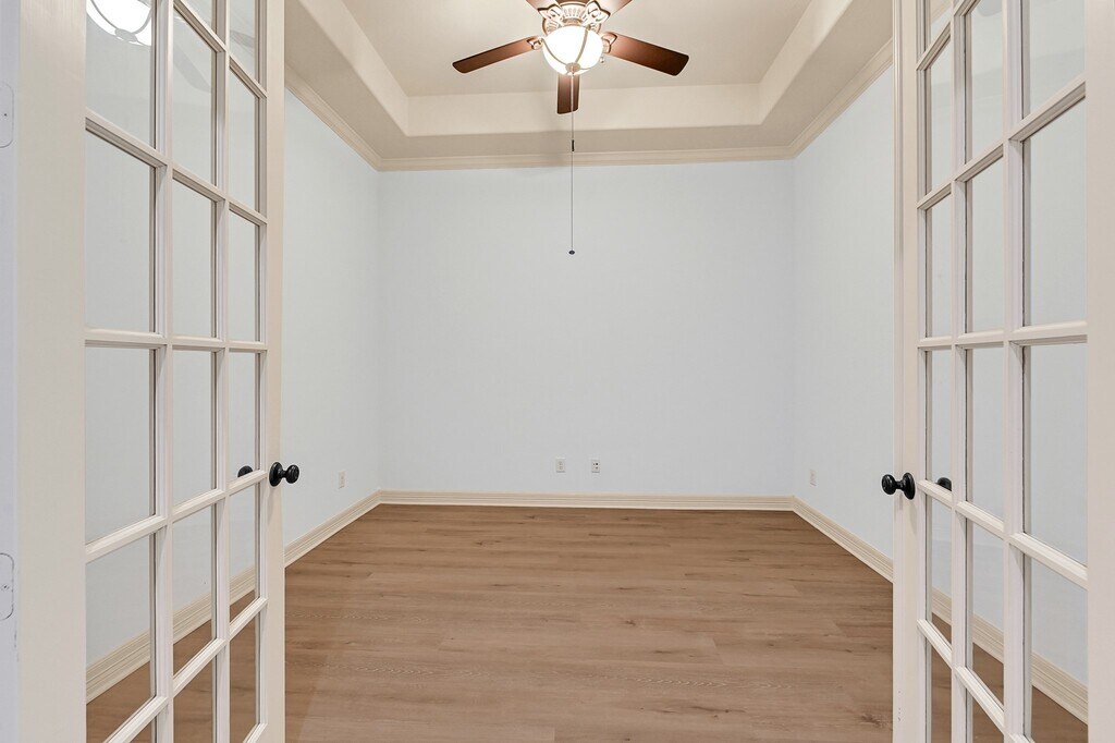 Welcome home to effortless elegance in the master-planned community of Cinco Ranch Northwest,zoned to top-rated Katy ISD schools including Jordan High. This stunning 1-story former Trendmaker model home sits on a cul-de-sac with no back neighbors. Inside,you’ll find an inviting open-concept layout with tall ceilings,crown moulding,luxury vinyl plank flooring,and no carpet. The granite island kitchen showcases rich cabinetry with intricate moulding,stainless steel appliances,and a gas cooktop,opening to the spacious living area with a gas log fireplace; perfect for entertaining. A private home office,powder room,and in-home utility room add convenience. The primary suite boasts dual sinks,a vanity area,jetted tub,and separate shower. Enjoy relaxing evenings on the covered patio overlooking your private backyard. Experience comfort,style,and the vibrant lifestyle of Cinco Ranch Northwest. MLS# 57615933