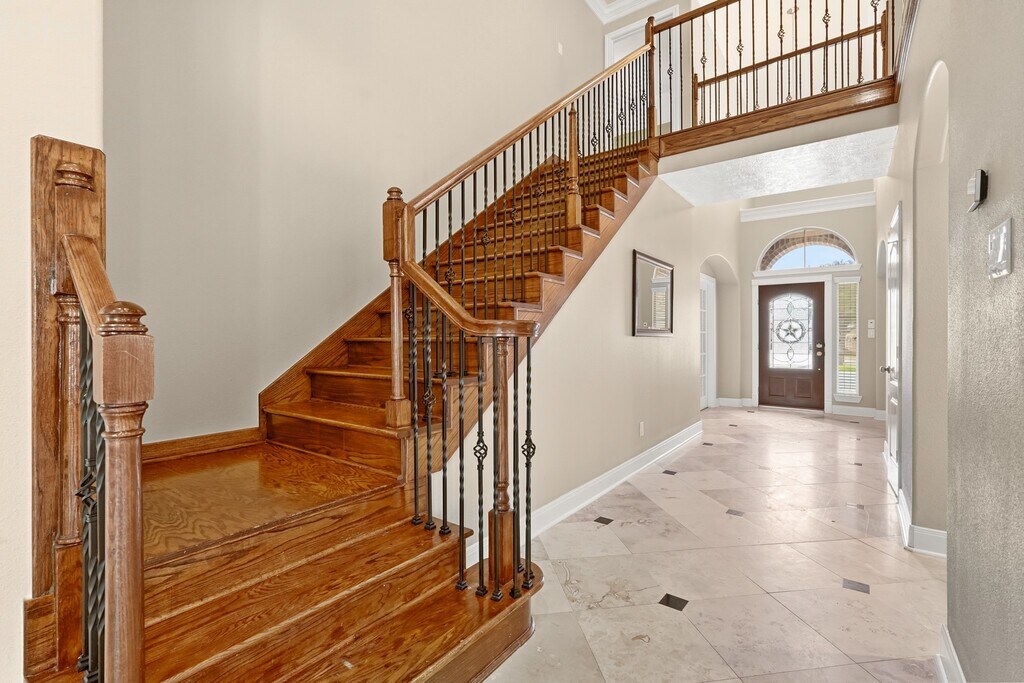 Welcome home to 2702 Pine Trail. This beautiful two-story home offers 4 bedrooms,2.5 bathrooms and sits on a spacious 10,930 sqft lot. The inviting brick exterior and mature trees create wonderful curb appeal. Inside,you’ll find soaring ceilings,elegant archways,and a bright open layout connecting the living room,dining area,and kitchen. The kitchen features granite countertops,stainless steel appliances,and ample cabinetry. The spacious primary suite on the main level includes a walk-in closet and ensuite bath with dual vanities,soaking tub,and separate shower. Upstairs offers additional bedrooms and a versatile loft overlooking the living room. The large backyard provides plenty of room for relaxing or entertaining. Schedule your showing today! MLS# 82547160