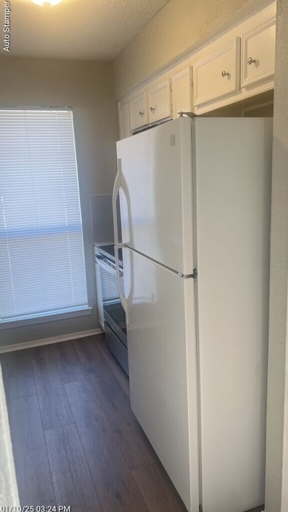 Remodeled split concept duplex with new vinyl planking throughout. Living area has a fireplace and open to the dining area. Kitchen includes the refrigerator with nice cabinet & counterspace. Both bedrooms have plenty of closet space. Covered patio and fenced backyard and Parking in the back is covered.
