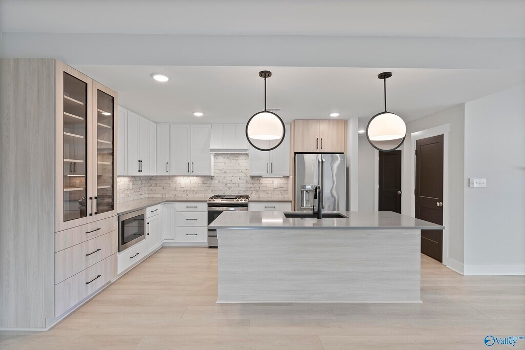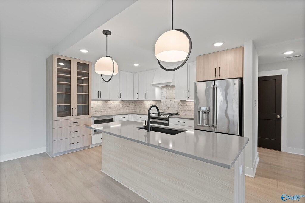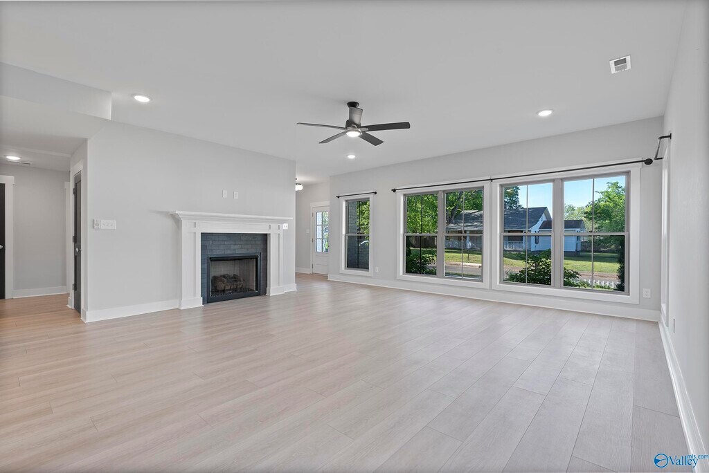 Welcome to this modern home located in the heart of Huntsville. The open floor concept creates a seamless flow from the living room,adorned with a cozy fireplace. The home features luxury vinyl plank and tile throughout,adding a touch of elegance and durability. The master suite is a true retreat with a custom closet and a large soaking bathtub. Step outside to a covered front porch and a screened-in back patio,ideal for enjoying the weather. The shaded yard provides privacy and space for outdoor activities. The property also includes a two-car garage for secure parking and storage. Located just minutes from downtown Huntsville.