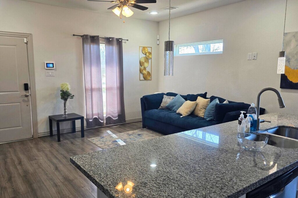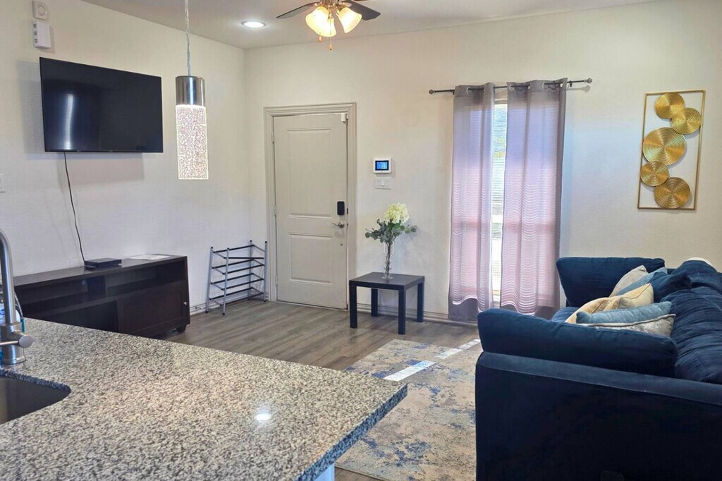 Feel at home in this modern 2-bedroom home located in Houston's quiet East End neighborhood, just five minutes from Downtown Houston. This duplex-style home offers quick access to major highways, top restaurants, stadiums, and the Texas Medical Center. This fully furnished home offers a spacious living area with a large sofa, Smart TV, and fast Wi-Fi. The fully equipped kitchen features stainless steel appliances, cookware, dishes, and a coffee maker. The updated bathroom includes fresh towels and toiletries, and the in-unit washer and dryer make extended stays even easier. Free private driveway parking is available right outside the entrance. Located in Houston’s East End, this home sits in a residential area with quick access to Downtown and some of the city’s top attractions. You're just a short drive from local restaurants, cafes, parks, and cultural spots like the East River 9 development, Daikin Park (ASTROS), and Discovery Green. With easy access to I-10, I-69, and 610, getting around the city is simple. This home is located near an active train track, and light sleepers may notice passing trains from time to time. White noise machines are provided in the bedrooms to help ensure a restful night. This is a duplex property and you will be staying in Unit A, which has a private entrance and no shared interior spaces. We ask all guests to be respectful of quiet hours and neighbors. No parties or events are allowed, and failure to follow house rules may result in additional cleaning fees or removal from the property. No smoking of any kind is allowed inside the home. Quiet hours are from 10 PM to 8 AM. [SI]