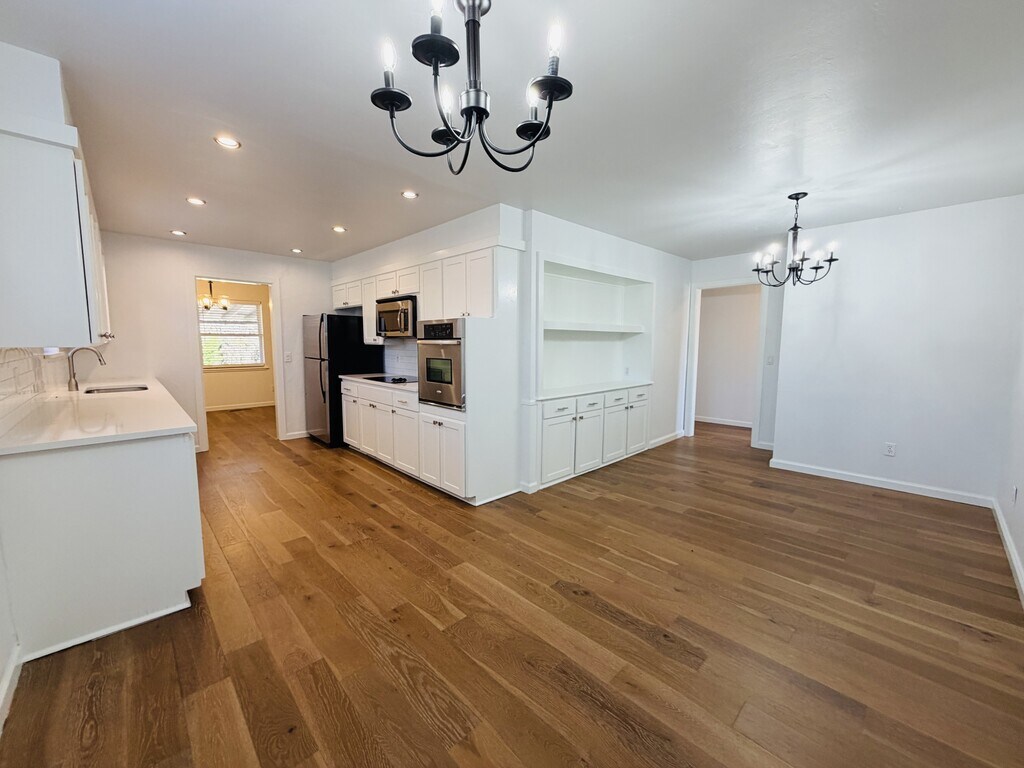 Beautiful remodel in The VIllage! 3 bedroom 2 baths 2 car garage with hardwood floors througout. Fireplace in living area, Kitchen provides refrigerator, microwave, oven and built in electric stove top. Updated tiled shower in primary bath and hall bath. Fenced yard with covered back patio. Pets welcome - ask for details.