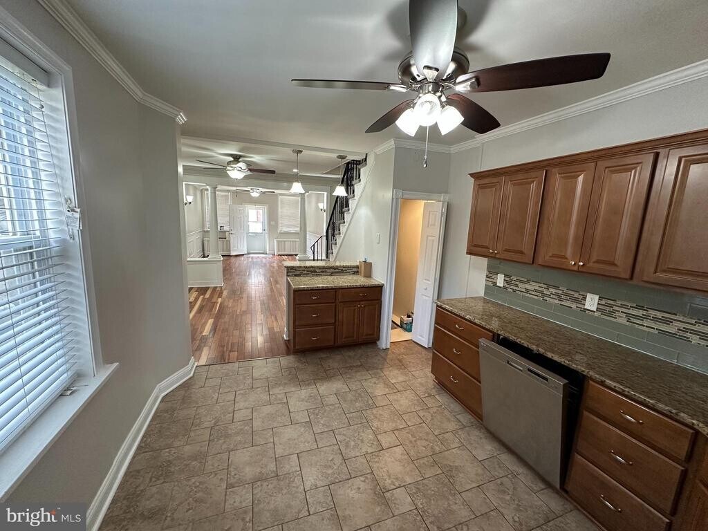 Beautiful moving condition rental offered in prime Port Richmond . Formal living with hardwood flooring, crown molding, chair rail , recessed lights , ceiling fan light . Formal dining area with hardwood floors , coat closet , gourmet eat in kitchen with granite countertops, tiled back splash , stainless steel gas range , stainless steel dishwasher , stainless steel microwave, ceiling fan light ,crown moldings ,stool seating counter . Rear stainless steel refrigerator , additional small fridge , pantry area . Full bath with stall shower, ceramic tiled floor, washer /dryer . Exit to a large full rear maintaince free yard and deck area . Large basement for storage . 2nd floor offers rear primary bedroom with hardwood floors, 2 ceiling fans with lights , mini split for extra heat and air , 2 closets , large window . Hall bath with tiled floor, sink cabinet, large stall shower . 2nd bedroom with carpets and closet , 3rd front bedroom with carpets and, ceiling fan light , closets . Hall linen closet . 3fl offers 4th bedroom or office with carpets ceiling fan light , crown moldings . Come and make this modern townhome yours ! Ready for quick occupancy !!! Close to all the restaurants and bars Port Richmond and Fishtown has to offer - Hinge Cafe , Taconellis Pizza , Tin Can bar , Somerset Splits , I95, Betsy Ross , and center city !!