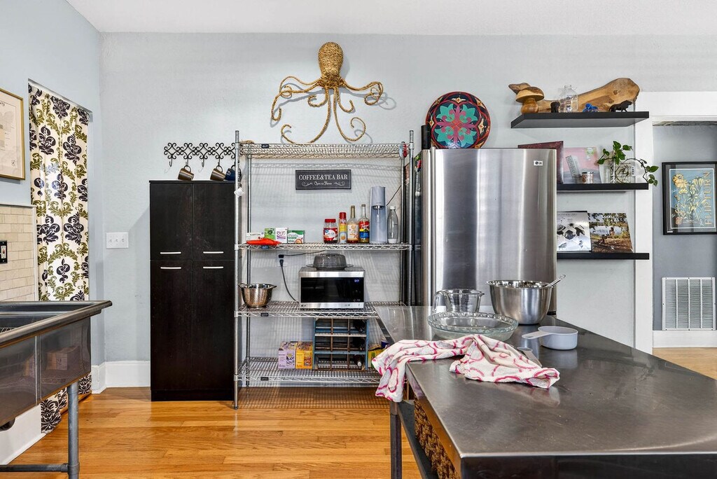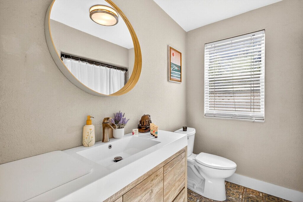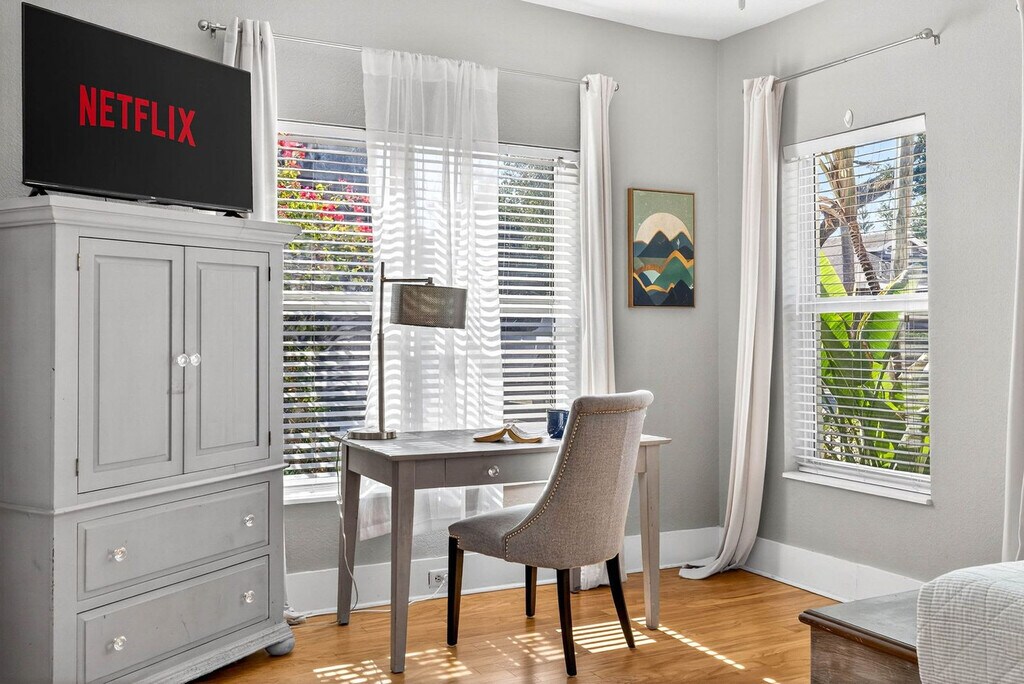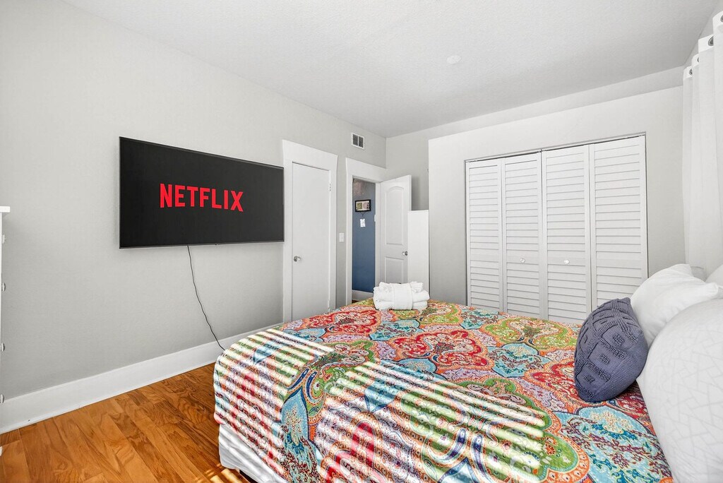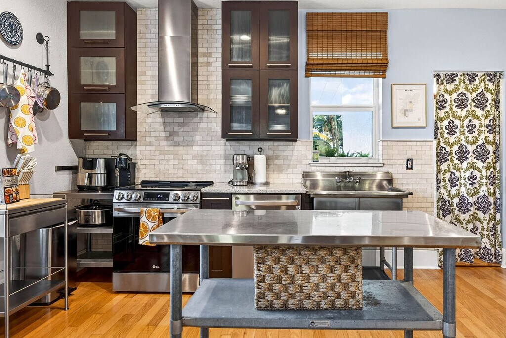Feel at home in this restored 1932 residence in Tampa Heights, combining historic masonry architecture with a private, landscaped outdoor oasis. This home offers 1,056 square feet of living space and is located just minutes from the Riverwalk and local breweries. Constructed in 1932, the home balances vintage charm with modern functionality. The floor plan provides an open flow between the living area and the dining space, anchored by an original masonry fireplace. The kitchen is designed for meal preparation and features stainless steel appliances, a central prep island, and a dedicated coffee station. A washer and dryer are available on-site. Driveway parking is included. House-trained, groomed pets are welcome with a fee of $100 per pet per stay, or per month for stays exceeding 28 days. Located in the historic Tampa Heights district, the home sits in a quiet residential pocket north of Columbus Drive. The area is celebrated for its walkability to the Hillsborough River and proximity to Armature Works, a premier destination for food and social gatherings. The central location offers quick access to major thoroughfares, making rideshare trips to Downtown Tampa, Raymond James Stadium, or the airport efficient and affordable. Quiet hours are from 8 PM to 8 AM. Smoking indoors and the use of fireworks anywhere on the property are prohibited. The designated smoking area is outdoors, 15 ft away from the property. Noise level must stay below 80 decibels during all hours; guests are automatically notified of violations by text. Misuse of the AC system, including setting the unit lower than 68 degrees leading to a technician call-out, may incur additional fees. Disabling or removing security devices or any technology results in a fee or removal from the home without refund. Late check-outs past 10 AM incur a $50 fee. Smoking violations or the presence of smoke smell may incur a $250 remediation fee minimum. Only guests listed on the reservation are allowed on the property. Illegal drug use results in immediate eviction without a refund. Includes a dedicated workspace and high-speed Wi-Fi for remote productivity. The primary bedroom features a dedicated workspace positioned by the window. [SI]