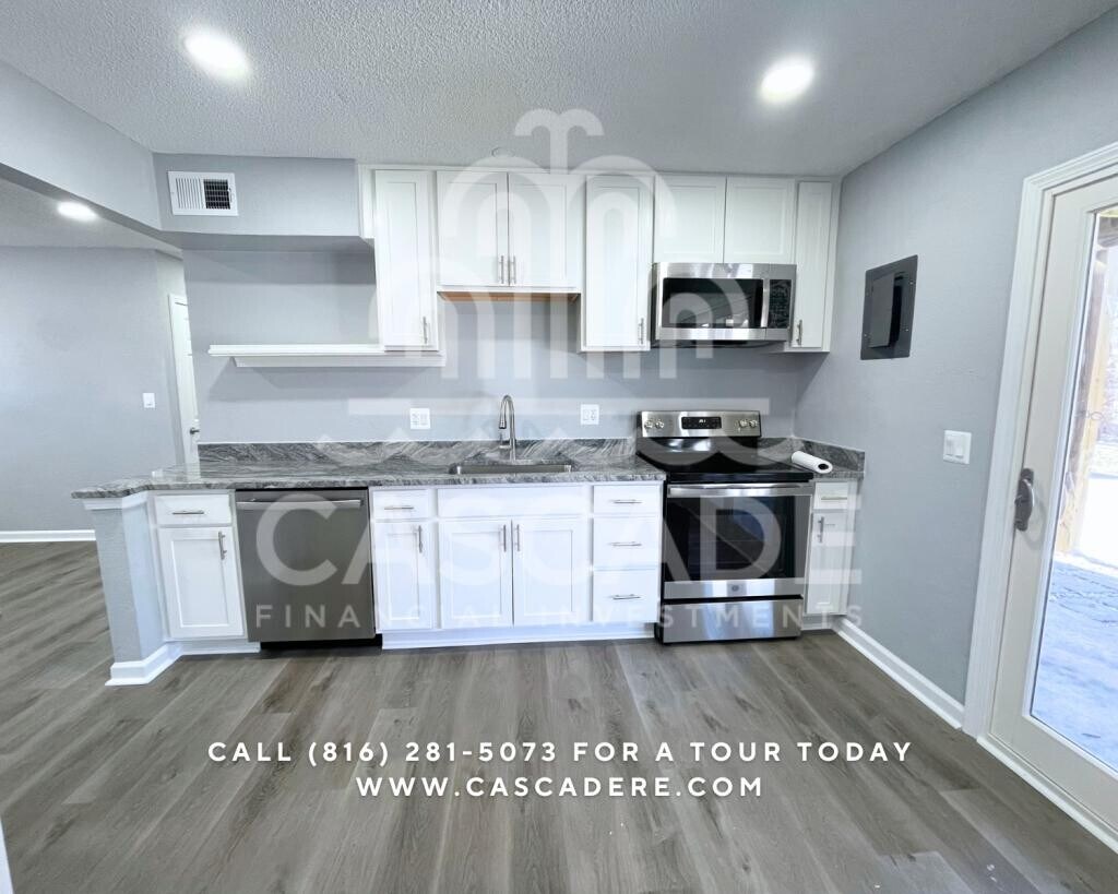 Available now! Tour this magnificent lower floor unit in Blue Springs, MO! FULLY renovated, this 2 bed/1 bath unit is calling your name to become your new home. During renovations, the home saw the following upgrades: - New LVP flooring throughout - Fresh cool-toned paint - Brand new windows - New kitchen cabinetry - All new energy efficient kitchen appliances - New washer dryer - New tiling in bathroom - New sink counter - New bathroom - Don't wait! There is private parking around back. This unit will not last long! Contact our team today to apply or tour. A video walkthrough is available on YouTube, TikTok, and Instagram! Pets: NO pets allowed - Yard: Unfenced / Shared Balcony Parking: Off Street - NO garage - 1 assigned parking spot available in the back, plus parking out front Washer/Dryer: In Unit - brand new Utilities: Tenants Responsibility Lawn Care: Owners Responsibility Lease Terms: 12 or 24 Months Available
