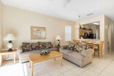 Come on vacation and feel at home in this luxurious 1910 sq. ft. townhome located in Regal Oaks Resort, just 3 miles from Disney. This spacious 4-bedroom, 3.5-bath home comfortably sleeps 8 guests and features a king bed, queen bed, and 4 twin beds. Situated steps away from the clubhouse, you can enjoy the Olympic-sized pool, waterslides, gym, and more. The ground floor serves as your central hub for relaxation and convenience, featuring a large TV lounge for cozy movie nights, a fully equipped kitchen with modern appliances, and a dining area perfect for sharing meals. A queen bedroom with an en-suite bathroom and an additional shared half bath complete this level. Upstairs, the master suite boasts a king bed, private en-suite bathroom, and a serene balcony to enjoy your morning coffee. Two additional bedrooms with twin beds each are ideal for kids or friends, along with a shared full bath. A laundry area with a washer and dryer adds extra convenience. Additional rentals like grills, high chairs, or pack-and-plays are available upon request for an extra fee. Located just 3 miles from Disney and a short drive to Universal Studios, SeaWorld, and top shopping outlets, this home is at the center of it all. Explore the nearby Old Town with its shops, restaurants, bars, and the Fun Spot theme park for family-friendly activities. Golf courses and the iconic International Drive are also just minutes away. Check-in is at 4:00 PM and check-out is at 10:00 AM, strictly enforced. Contact us at least 48 hours prior for adjustments. A cleaning fee applies to all stays, with mid-stay cleaning available for an additional charge. RV and trailer parking are not allowed in the resort. Basic supplies are provided, but guests should bring food, condiments, toiletries, and additional cleaning products. As a guest, you'll have full access to the Regal Oaks Resort clubhouse, featuring pools, water slides, a gym, and a restaurant and bar that even offers delivery to your door. Old Town and Fun Spot are just steps away, offering restaurants, shops, and entertainment for all ages. [SI]