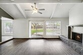 Beautifully updated three bedroom two bathroom home offering a spacious and functional layout with recent interior improvements throughout. The living area features vaulted ceilings with exposed beams, a wood burning fireplace, and large windows that bring in excellent natural light. A sliding door provides easy access to the backyard and patio. The updated kitchen includes granite countertops, painted cabinetry, stainless steel appliances, and generous counter and storage space. A dining nook sits just off the kitchen with a view of the backyard. The primary suite includes a large two room layout, an updated vanity with granite counters, a walk in tiled shower, and a private toilet room. Secondary bedrooms offer ceiling fans and low maintenance flooring. Both bathrooms have been refreshed with modern fixtures. The exterior features a large fenced backyard with mature trees, a concrete patio, and plenty of usable space. An attached two car garage provides secure parking and additional storage. This home is conveniently located near schools, shopping, and major roadways and is ready for immediate occupancy.