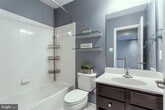 Spacious colonial townhouse with a contemporary feel. Almost 2800 sqft with upgrades throughout. 3 bedrooms on the top level with 2 full bathrooms. Main and lower level each have a half bathroom. Primary bedroom has two large walk-in closets. Carpet on the bedroom level. Beautiful hardwood floors through out the main and lower level. High ceilings, custom crown moldings, ceramic tile, formal living room, open fully equipped gourmet kitchen into dining room and family areas. A huge recreational room in the lower level. 4 parking spaces total, attached 2 car garage and 2 car driveway. 2nd level deck and rear walk-out to patio. ** LANDLORD REQUIRES CREDIT SCORE 700+, HOUSEHOLD COMBINED NET INCOME 3X OF RENT, NO PETS, 2 YEAR MINIMUM LEASE PREFERRED**