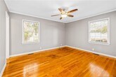 Charming Vanstory Hills Gem – Move-In Ready! Welcome to this idyllic Vanstory Hills home, perfectly located just a 5-minute stroll from the elementary school! This beautifully maintained 3-bedroom, 2-bathroom residence offers a seamless blend of comfort, character, and convenience. Beautiful hardwood floors flow throughout the home, complementing the elegant, updated bathrooms—including an en suite in the Owner’s bedroom featuring a walk-in shower. The flexible floor plan includes a dedicated den or office space with built-in bookcases, ideal for remote work or study. Step into the spacious Carolina Room, anchored by a cozy gas log fireplace, with direct access to the deck and patio—perfect for outdoor dining, entertaining, or simply enjoying the fully fenced backyard. Whether you're hosting friends or letting the kids and pets play, this space is designed for living. Storage is not a concern with pull-down attic (some flooring) and attached outside utility room. OH! And added plus - there is hot water garden hose so you can wash you car even when it's chilly outside!!! Don’t miss your chance to tour this inviting home. With its prime location and move-in ready condition, it could be yours just in time for the holidays! *Small Dogs Only