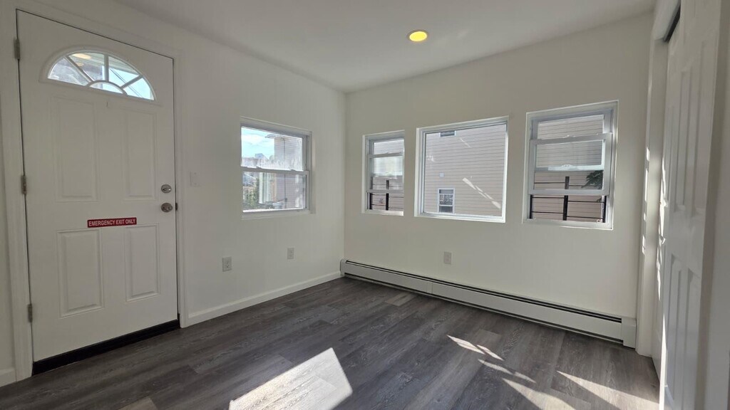 Welcome to this beautifully remodeled second-floor apartment, perfectly situated in the heart of Union City. Only minutes from Manhattan by car or public transportation! Step inside and experience a bright, contemporary space featuring brand-new electrical and plumbing systems, a full-size washer and dryer in-unit, and an open-concept layout ideal for modern living. The kitchen is a chef’s delight, boasting Samsung stainless-steel appliances, custom soft-closing cabinetry, and a seamless flow into the living and dining area, perfect for entertaining. Each of the three bedrooms is filled with abundant natural light, while the primary bedroom offers a breathtaking panoramic view of the New York City skyline. The spacious bathroom showcases brushed nickel finishes and a sleek, modern design. Enjoy the best of both worlds, a peaceful home setting in one of Union City’s most convenient locations, with easy access to shopping, dining, parks, and transportation to NYC.