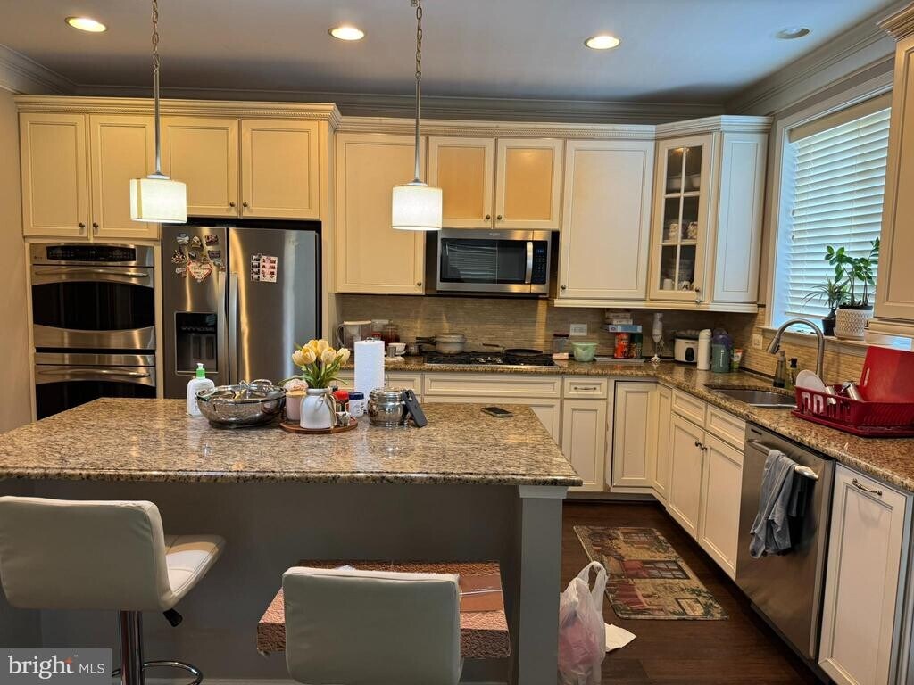 Well-Maintained 3-Bedroom End-Unit Townhouse in Rockland at Rogers Spacious and modern end-unit townhouse featuring 3 bedrooms, 2 full baths, 2 half baths, and a 2-car garage in the highly sought-after Rockland at Rogers community. Step into the welcoming foyer with a convenient entry living area and half bath. The main level boasts a gourmet kitchen with stainless steel appliances, including a 5-burner stove, upgraded double wall oven, upgraded dishwasher, side-by-side refrigerator, microwave, and granite countertops. Enjoy hardwood floors, a butler's pantry, a large center island, and an eat-in kitchen filled with natural light. The open floor plan, 9+ ft ceilings, elegant oak stairs, and a cozy gas fireplace make this home perfect for both entertaining and everyday living. Upstairs, the primary suite offers a walk-in closet and an upgraded bathroom with a dual vanity and standing shower. A washer and dryer are also located on the upper level for added convenience. Located just minutes from US-29, I-70, I-695, and US-100, this home provides easy access to shopping, dining, and major commuter routes. Owner pay HOA. Tenant pays all utilities, Lawn care, snow removal, minor interior &exterior maintenance. Repair deductible $100