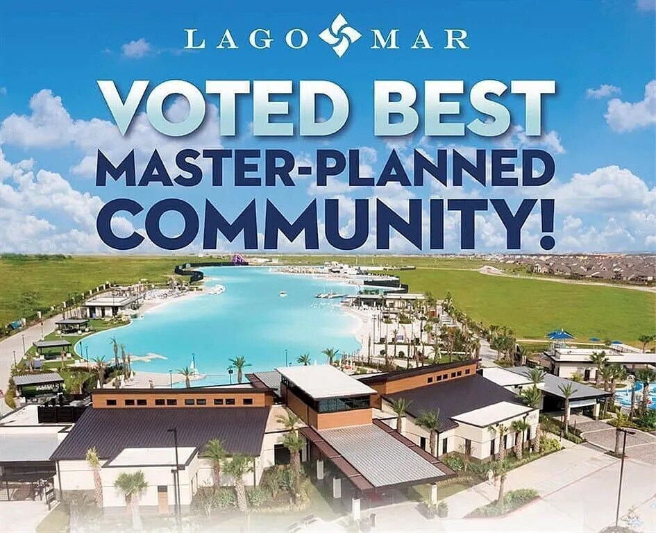 This beautiful,4 bed/2 bath,2-car garage home is located in the award-winning Lago Mar community,voted Best Master-Planned Community in the Houston area! Here,you'll have resident access to the amazing 12-acre crystal clear lagoon! Enjoy white sand beaches,swimming,kayaking,paddle boarding,sailing,water bikes,and the inflatable obstacle course in the lagoon! Attend live concerts and community events! There are 12-foot-wide trails,multiple pools and fitness centers. Kids will also love the splash pad,playground,and soccer field! This home features a spacious kitchen with granite countertops,an open layout and soaring ceilings. Ask about the internal pest control system built into the walls of the home. Enjoy the private backyard,with no neighbors behind you! Be the first to live in this home! Make this gorgeous resort-style community your own relaxing staycation to enjoy every day! MLS# 44214836