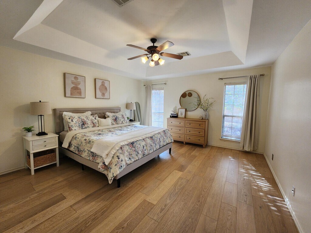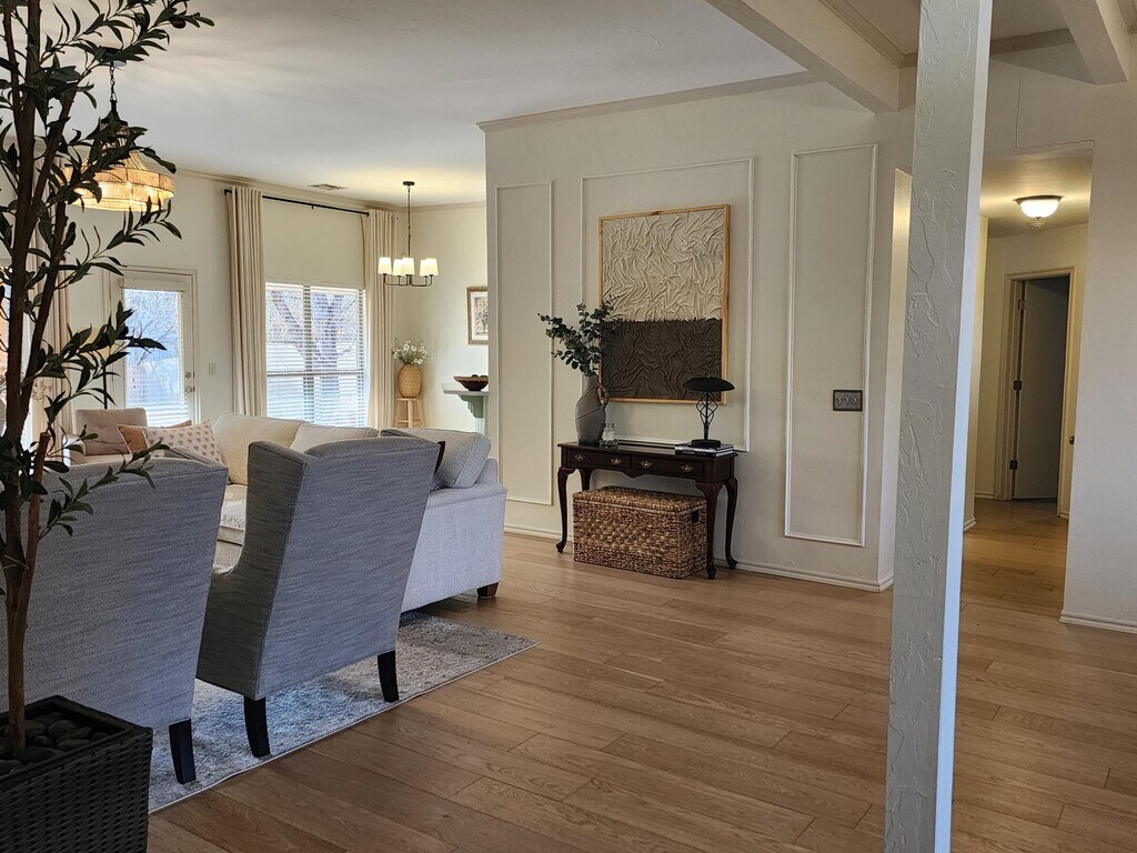 COMIG SOON! Edmond-Woodvine community. This lovely newly updated and well maintained home sits in this quiet community with with a community park and open spaces. Conveniently located to shopping and restaurants . This home features stainless tell appliances to include refrigerator, stove/oven, built in microwave, dishwasher. Comfortable open floorplan includes gas fireplace in the living room and beautiful hardwood floors and tile through out. New and beautiful updated light fixtures add to the charm of this lovely home. Large pantry off the kitchen and plenty of storage throughout. Primary bedroom bedroom includes a 5 peace bath to include stand alone shower and garden tub as well as large walk in closet. Well manicured landscape with a covered back patio for entertaining. Large fenced in back yard. Two car garage with attic space and storm shelter. Rent=$2500 per month plus tenant responsible for all utilities. Deposit=$2500 Pets possible with owner approval and additional non-refundable pet fee per pet. Nearby schools Angie Debo Elementary School Grades: PK-5Distance: 0.8 mi Summit Middle School Grades: 6-8Distance: 1.8 mi Santa Fe High School Grades: 9-12Distance: 3.1 mi To schedule a showing, please text Sandi directly at or
