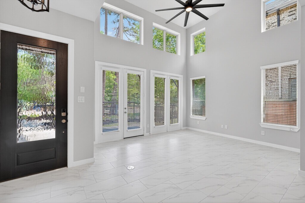 Beautiful townhome located just across from shopping,dining,and everyday conveniences! Enjoy a private front patio surrounded by trees and greenery. Inside,soaring ceilings and double-stacked windows fill the family room with natural light. All bedrooms are upstairs,keeping the first floor perfect for entertaining. The kitchen features quartz countertops,built-in appliances,and elegant cabinetry. The primary suite offers a window seat,double sinks,and separate shower. A loft connects the secondary bedrooms for added privacy and flexibility. Includes a rear-loading two-car garage with private driveway,plus tankless water heater,smart water system,dehumidifier,and interior sprinkler system. Move-in ready and low-maintenance living in a prime location! MLS# 87845060