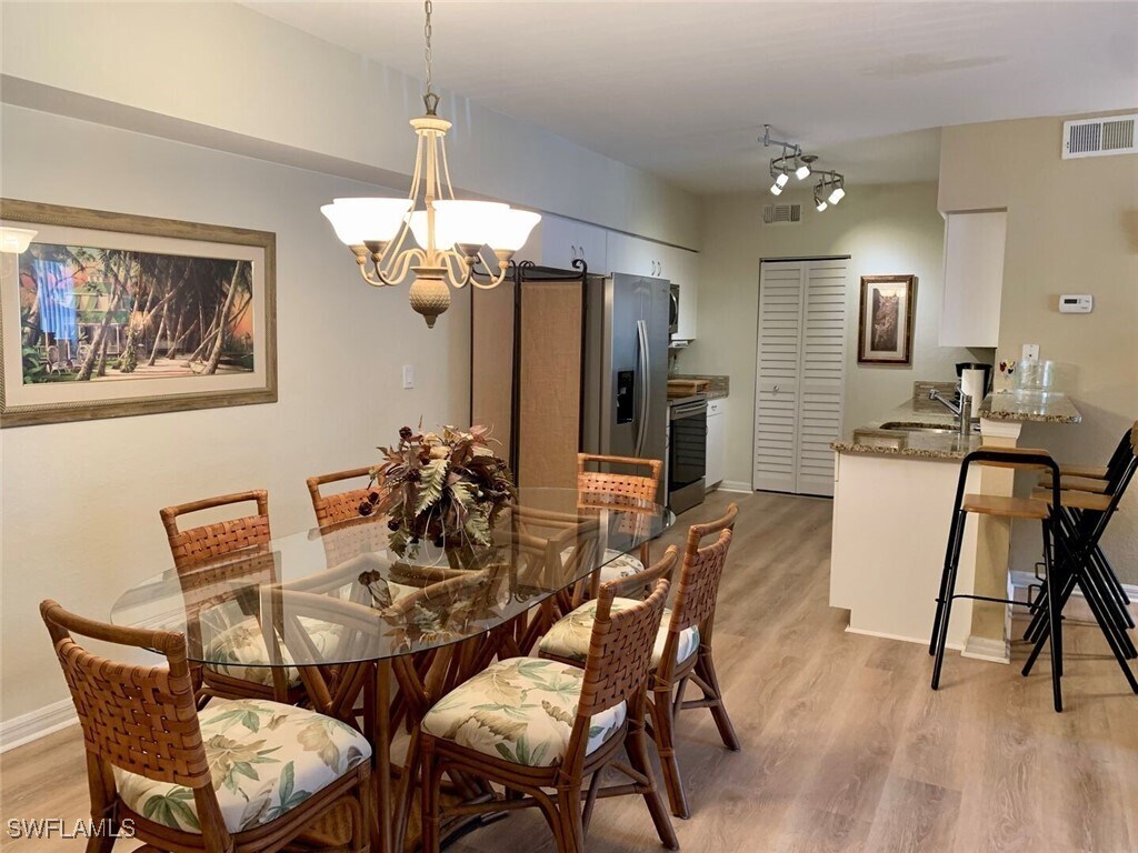 Charming 1st floor condominium in the community Gardens of Bonita Springs. New laminate flooring installed in living area and bedrooms! New sofas in Living room. This full two bedroom residence features a spacious floor plan,is fully equipped and is a great vacation spot for your winter get away. Master bedroom and guest room have Queen beds. The living room features comfortable seating and the formal dining area offers seating for eight. Updated kitchen and bathrooms. Condo is steps away from the pool! Gardens of Bonita Springs features a community club house with a fitness center,playground,and pool area. Centrally located between Naples and Fort Myers with easy access to the interstate and US-41. Gardens of Bonita Springs is a hidden gem,close to shopping and dining. walking distance to downtown Bonita with lively entertainment options! approximately 20 minutes to SW Florida International Airport and a short drive away from the white sandy beaches of the Florida Gulf.