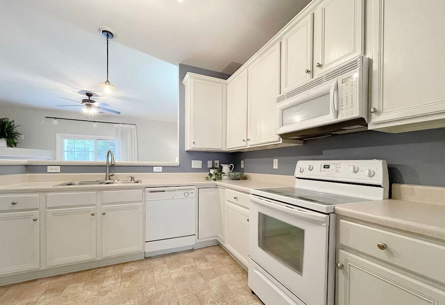 Beautiful townhome with bright open floor plan and screened porch in popular Bedford POOL/TENNIS COMMUNITY!! Covered front porch with stone accents. Dining room with hardwoods, wainscot and crown molding. Sunny Kitchen with breakfast bar, 42'' white cabinets and pantry. Spacious Family room with hardwoods, ceiling fan and sliding door to the wonderful screened porch. Primary bedroom includes huge walk-in closet, ceiling fan. Primary Bath has dual vanity and garden tub. Spacious secondary bedroom with ceiling fan, walk-in closet and private Bath. Laundry room with shelving. Everyone will enjoy the incredible neighborhood Amenities with 2 Pools plus Tennis Courts, Pickleball Courts and Clubhouse!! And... a great location--close to I-540, shopping, dining, Neuse River Trail, Falls Lake and more!!