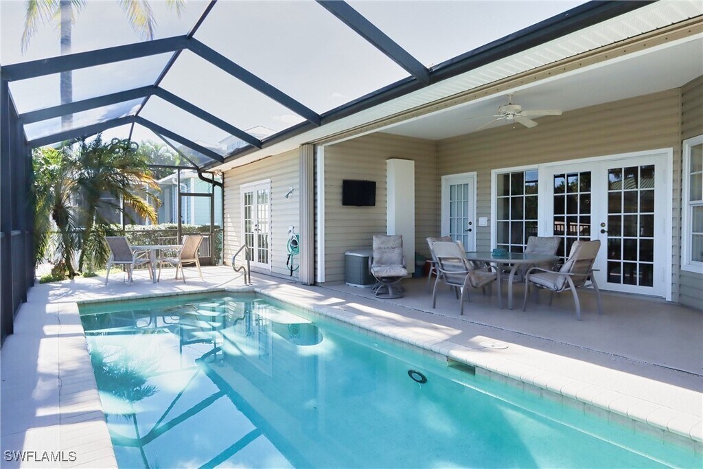 Waterfront retreat in “PARADISE VILLAGE” A PRIVATE,GATED,WATERFRONT-BOATING-FISHING COMMUNITY. BOAT LOVERS this is for you! Private BOAT DOCK right in your own backyard! Boat lift not included in rental. This requires an additional fee and approval. Situated in the gated community of Paradise Village,this eastern exposure waterfront home,offers easy access to the Imperial River and Gulf of Mexico—a true Boater’s paradise! This Key West style home features a large coastal front porch as well as a back lanai with pool and hot tub. Watch as he manatees and occasional dolphin swim by as well as an array of birds! Don’t be surprised if you have an Eagle spotting! The gated community consists of one private and nicely landscaped street with charming Old Florida style homes. Many amenities like the beach,the downtown area,fabulous restaurants,the dog park,public golf (literally just across the street),library,shopping centers for daily life things,the Promenade,Coconut Point shopping area and the International airport are very close by.. 3 bedrooms + Den and 2 1/2 baths. King in Primary - owner reserved 1 closet for personal use/ 1 closet for guests. King in #1 guest room with doors out to lanai. Trundle (2 twins or king in #2 guest room.,Master bath with walk in shower and dual sinks,Guest bath with "European tub",sink and walk out to pool,1/2 bath for guests located off the living area. Den with desk,loveseat & TV. Living area has a conversation area as well as a family area off the kitchen with TV. TV's are set up for streaming. Many more options than regular cable! AND you can record shows! Nice front porch as well as the lanai in back with Pool and hot tub! Grill on lanai for easy BBQ! Pool and hot tub are operated with keypad inside the home. **Small pet permitted with owner approval and additional pet fee. ***Information contained herein deemed reliable but not guaranteed*** ** H BS 27091