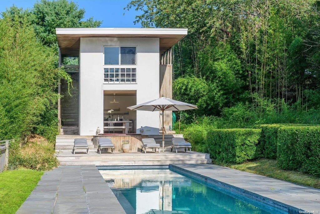 Located South of the Highway in Southampton Village,"THE WAVE" is a sprawling,updated and turnkey modern home that is the ideal retreat for year-round Hamptons living. With a southern exposure providing an abundance of natural light,the bright,open living spaces are ideal for entertaining. The 4 bedroom,4 bath home benefits from oversized panels of glass that look out over the 1.30+/- acre park-like grounds,soaring ceiling heights,second floor balcony,radiant heated bluestone floors and a covered loggia. There is an impressive 2 story pool house,outdoor shower,64' heated gunite pool,a 2 car garage and a Zen vibe that nothing can compare to. The grounds are manicured to perfection and feature a thoughtfully-designed landscape featuring mature trees and plants and room for tennis. All within very close proximity to the Hampton Jitney,the ocean and heart of the village. Based on information submitted to the MLS GRID as of [see last changed date above]. All data is obtained from various sources and may not have been verified by broker or MLS GRID. Supplied Open House Information is subject to change without notice. All information should be independently reviewed and verified for accuracy. Properties may or may not be listed by the office/agent presenting the information. Some IDX listings have been excluded from this website. Prices displayed on all Sold listings are the Last Known Listing Price and may not be the actual selling price.