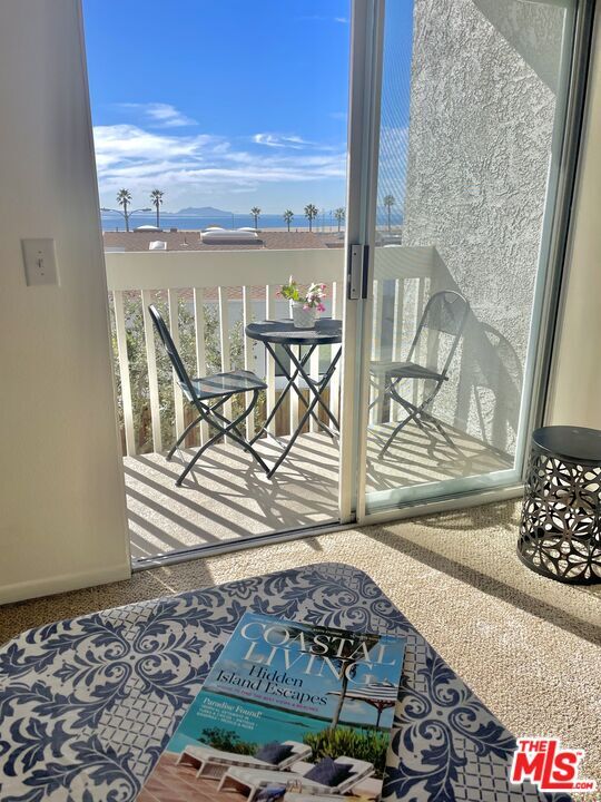 Port Hueneme Beach condo rental with beautiful 180 ocean views is available for long-term lease. Watch boats sail by and listen to the surf with gorgeous views of Anacapa and Santa Cruz Islands directly in front of your two balconies. Almost 1,000 square feet on two floors. 2 bedrooms, 1-1/2 baths. Big open concept ocean view living room and kitchen with a half bath and storage on the first floor. All freshly painted. New high style light fixtures, faucets, heater. The upper floor has a large master with walk-in closet and a mesmerizing ocean view. Full bathroom with shower and tub and a second private bedroom down the hall with an inland mountain view. Security screen doors, covered parking, washer, dryer, dishwasher and fridge all included. Pool, jacuzzi, ping pong, pool table, BBQs, clubhouse and pickleball courts. 1 block to the beach, surf break and pier. MLS# 25629121